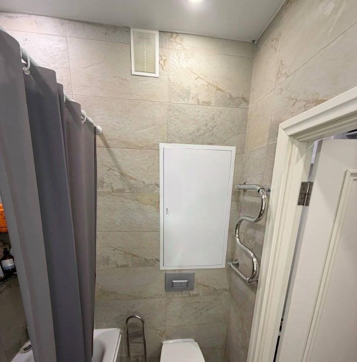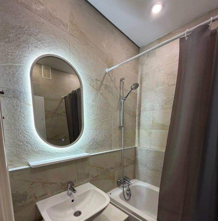 Совмещённый санузел выполнен с качественной отделкой. Дом современный, оснащён пассажирским и грузовым лифтами, есть подземный паркинг.