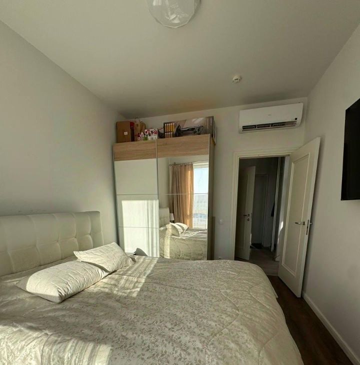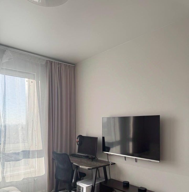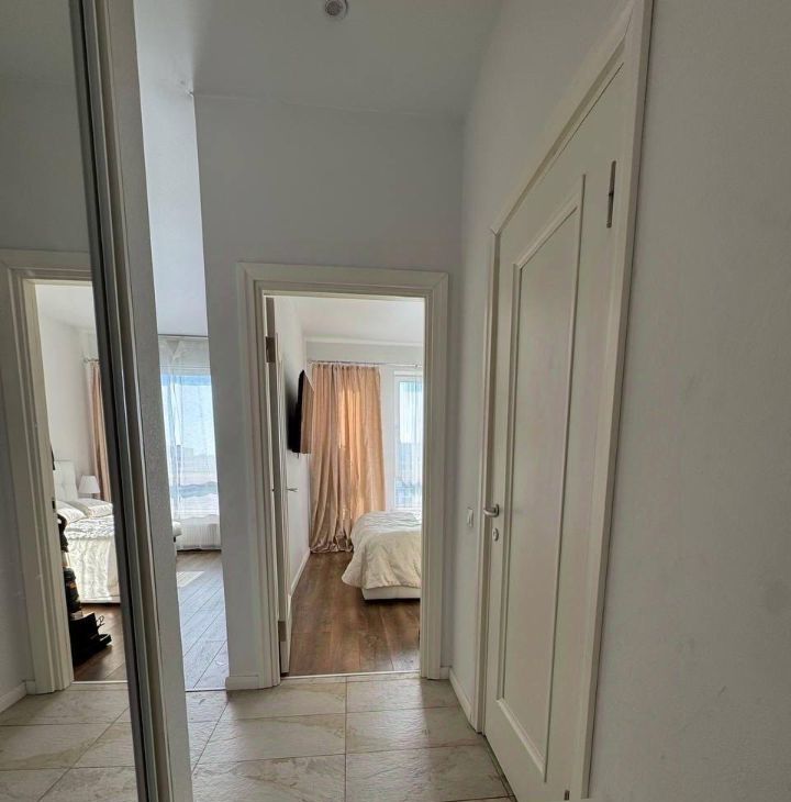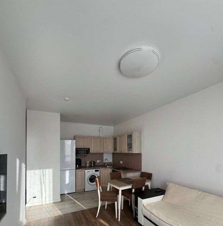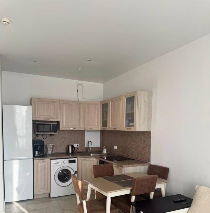 Функциональная планировка: просторная кухня-гостиная площадью 16 м² и изолированная спальня. Квартира полностью готова к проживанию — кухня оборудована всей необходимой техникой, включая холодильник и стиральную машину.