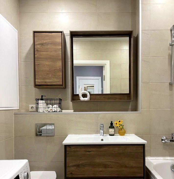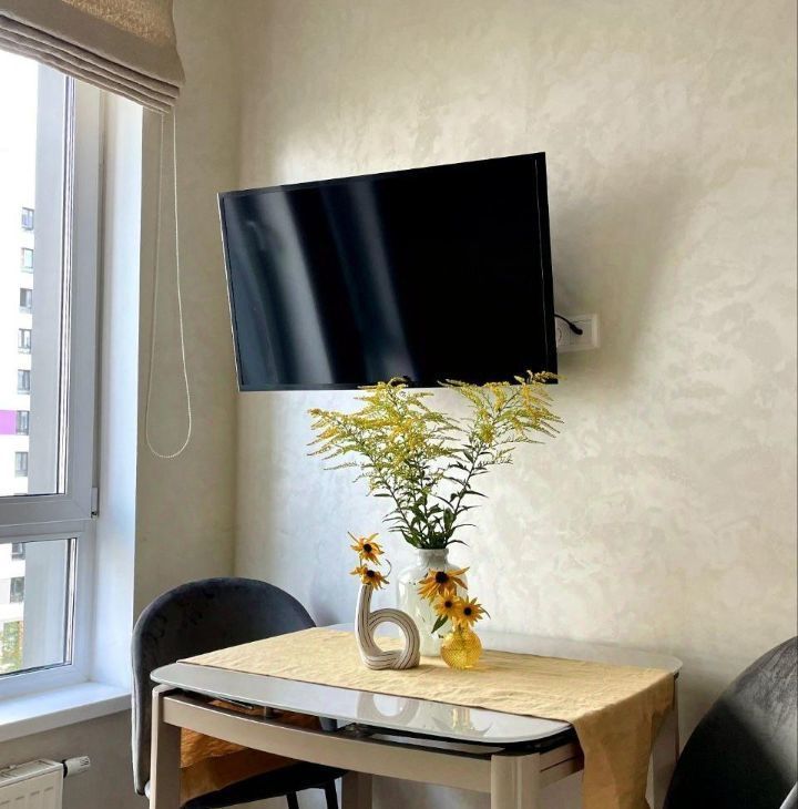 В квартире есть всё необходимое для комфортного проживания: современная мебель на кухне и в комнате, а также вся необходимая техника — холодильник, телевизор и стиральная машина. Санузел совмещённый, оборудован ванной. В квартире проведены интернет и телефонная связь, поэтому всегда можно оставаться на связи.