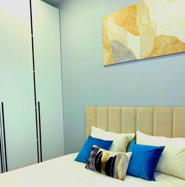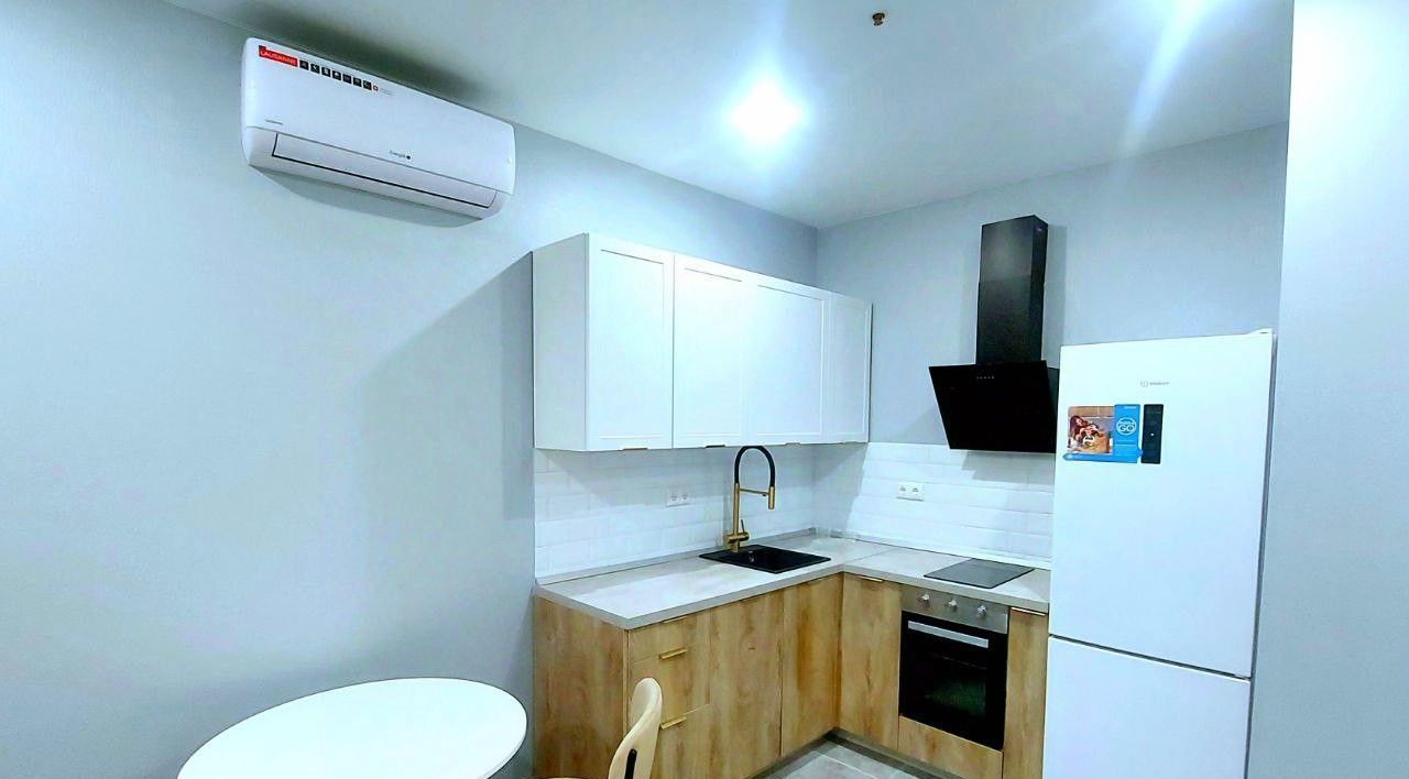 В квартире сделан хороший ремонт, Оборудована всей необходимой техникой: есть бойлер (на случай отключения горячей воды), варочная панель, холодильник, духовой шкаф вытяжка, кондиционер, стиральная машина, телевизор. Высокоскоростной интернет, Wi-Fi.