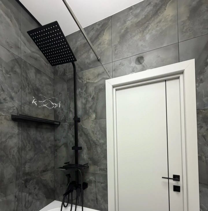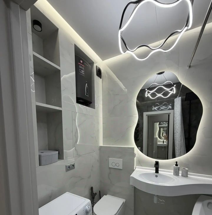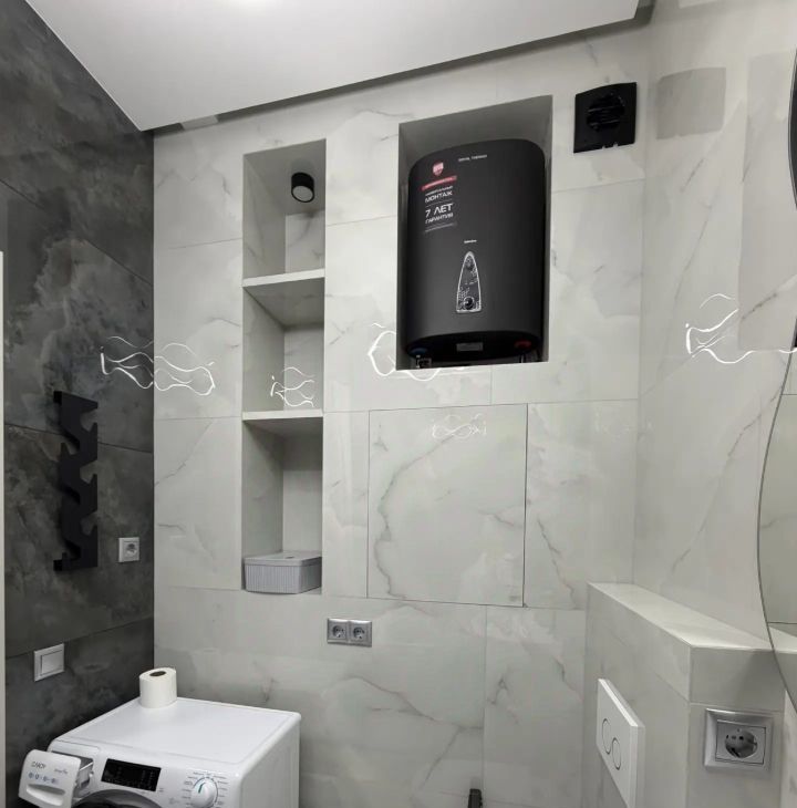 4. В санузле дизайнерская сантехника, гигиенический душ, стиральная машинка, водонагреватель, теплый пол.