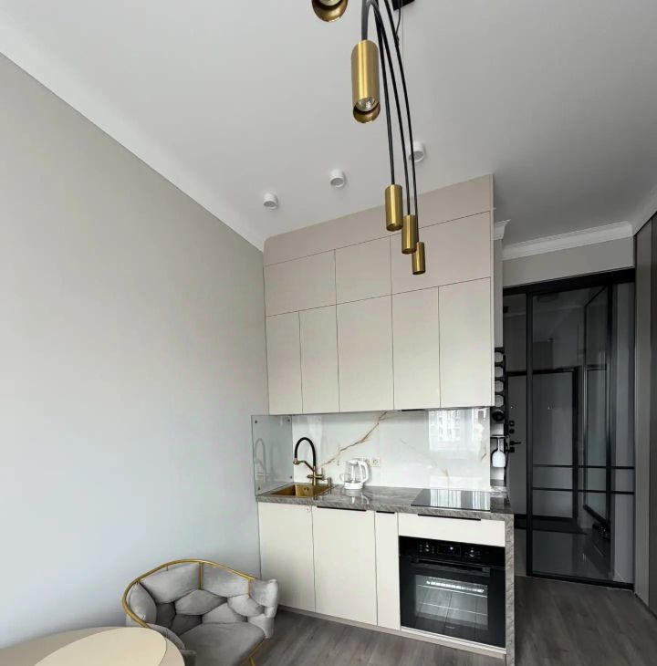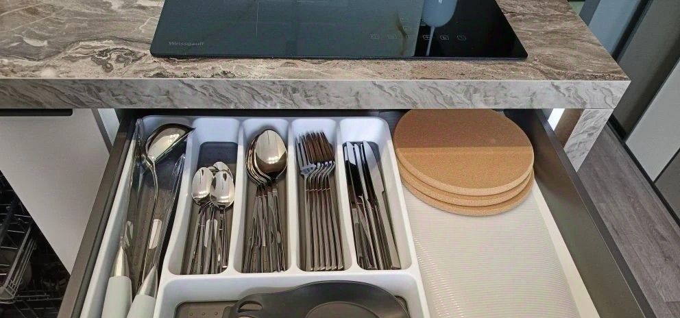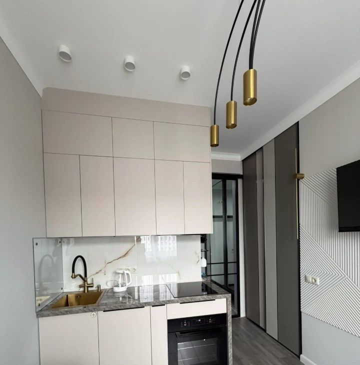 2. Полноразмерная кухня с набором техники: индукционная варочная поверхность, встроенный духовой шкаф, встроенная посудомоечная машинка, вытяжка, вместительный холодильник с морозильной камерой, смарт ТВ 43 , чайник. Обеденный стол с комфортабельными креслами. Новая посуда и столовые принадлежности.