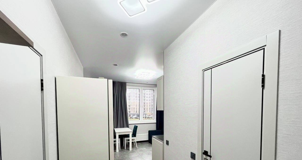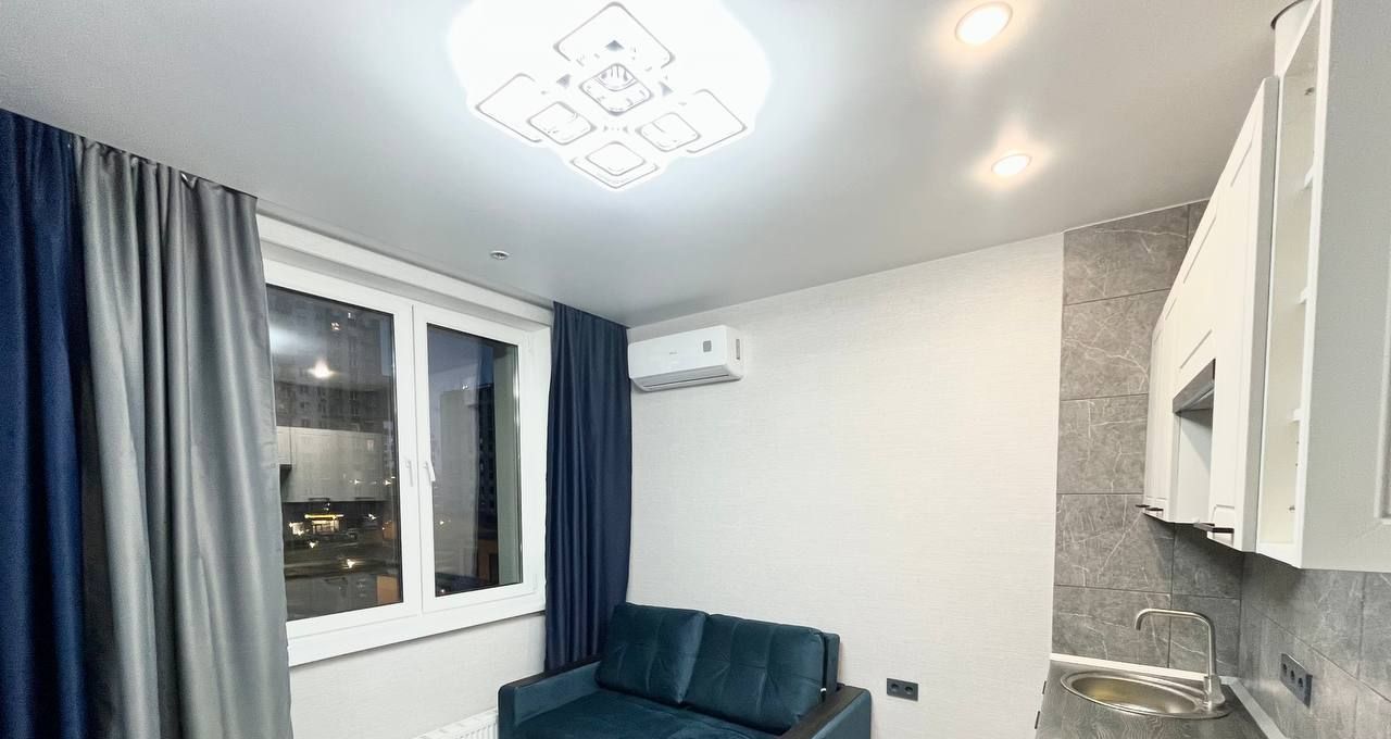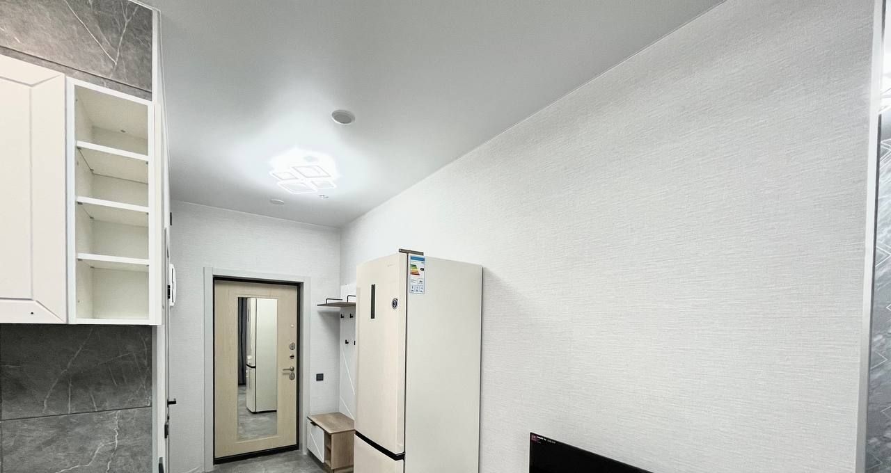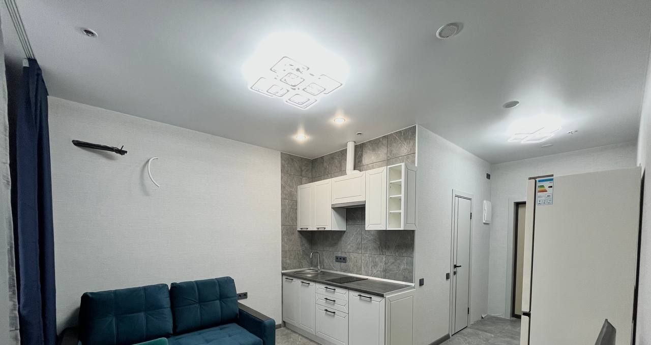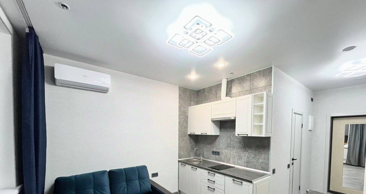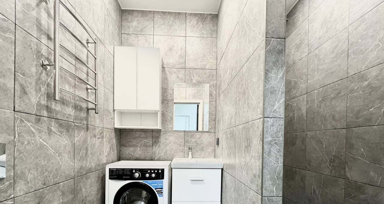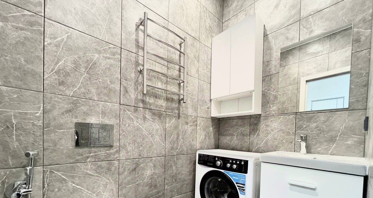 Квартира с современной отделкой в светлых тонах, полностью меблирована и оборудована всей необходимой бытовой техникой ( ТВ, плита, вытяжка). Состоит из кухни - гостиной, и отделенной спальной зоной с большой кроватью также имеется холл 3 кв.м с и просторный санузел с душевой и стиральной машиной, потолки 2,7 м. кондиционер, высокоскоростной интернет. Есть отдельная Гардеробная