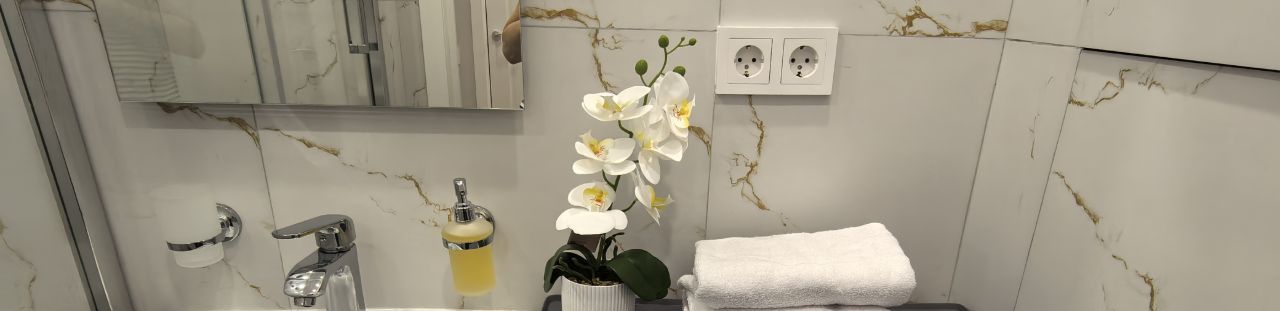 * Чистый, минималистичный санузел (формат отельного SPA).