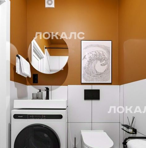 Ванная комната с полноценной ванной , стиральной машинкой с функцией сушки и всеми необходимыми аксессуарами и местом для хранения