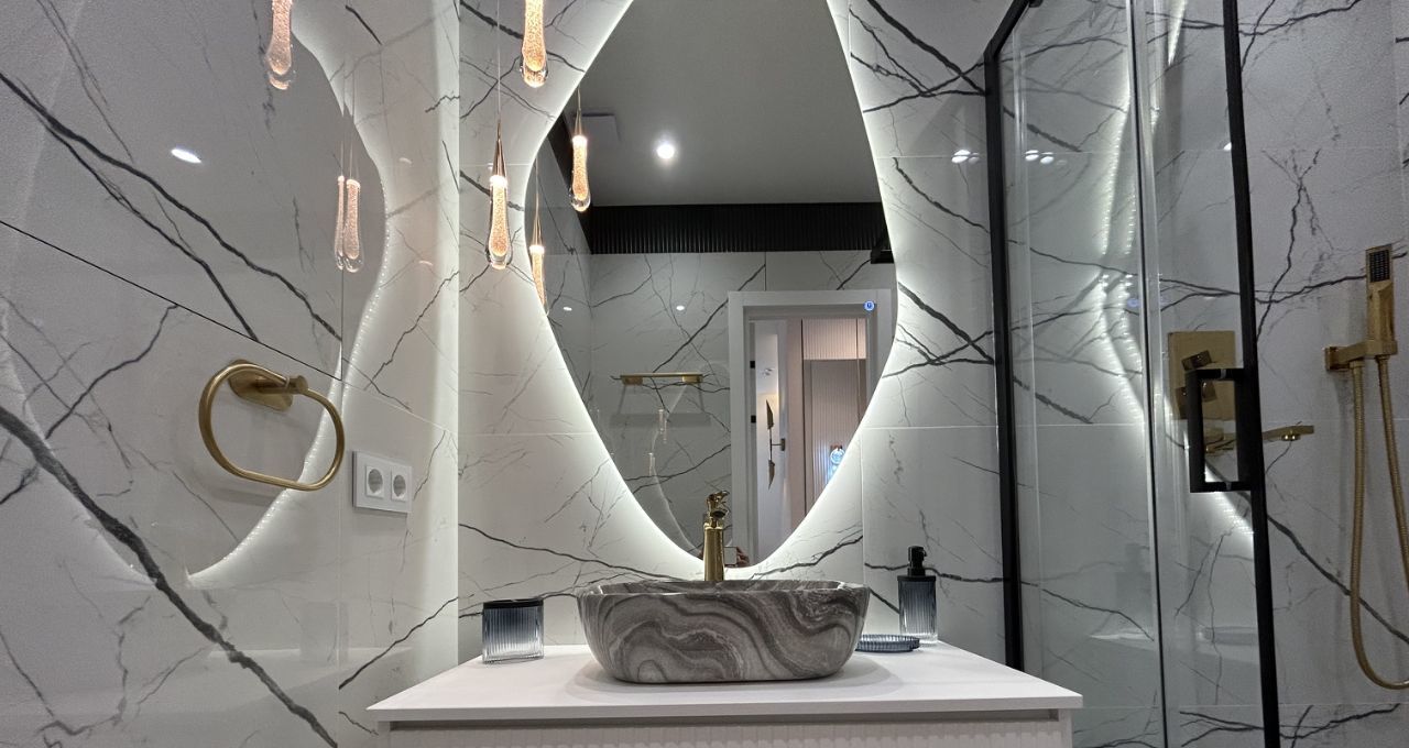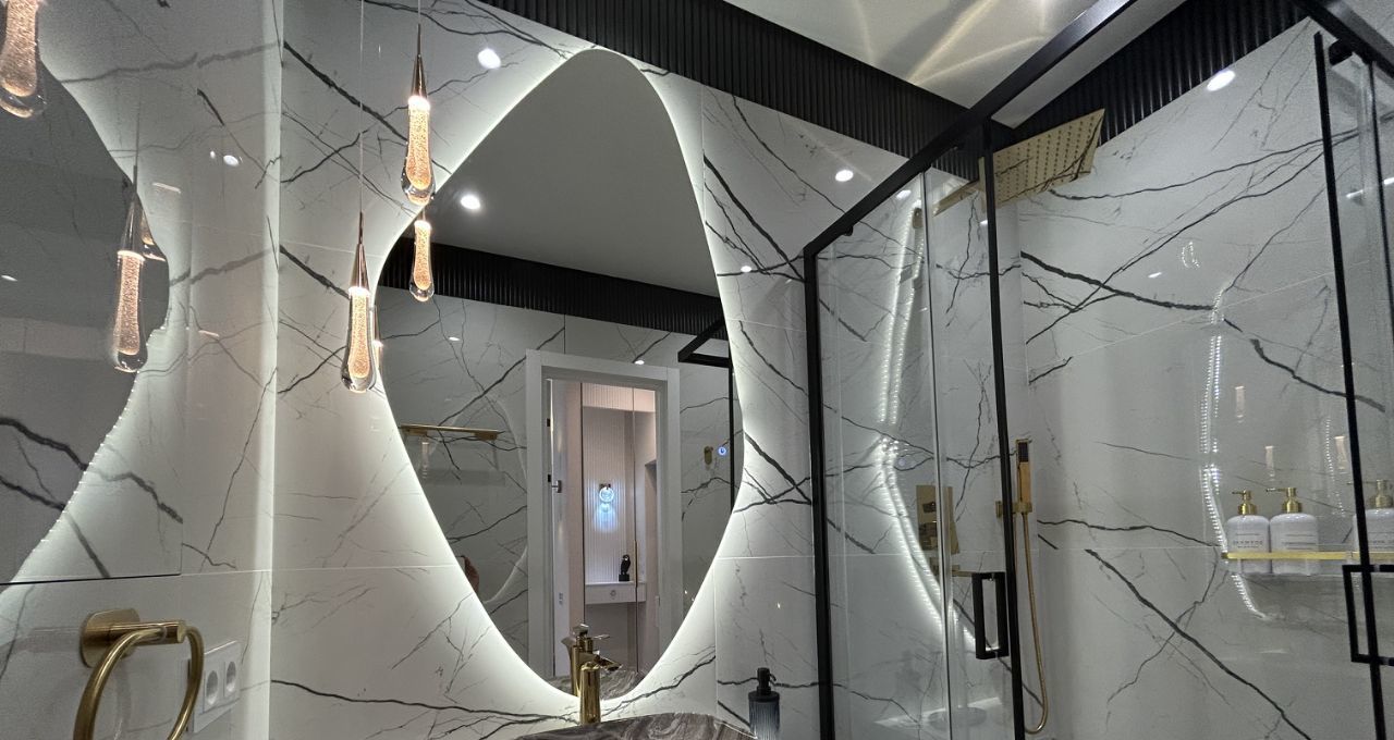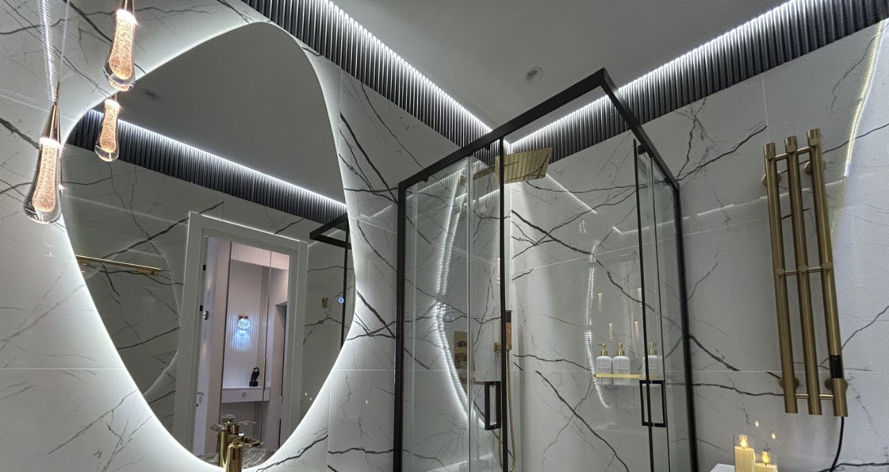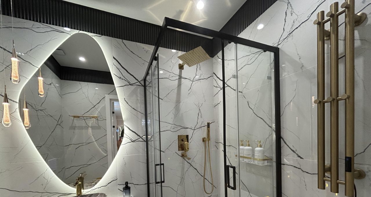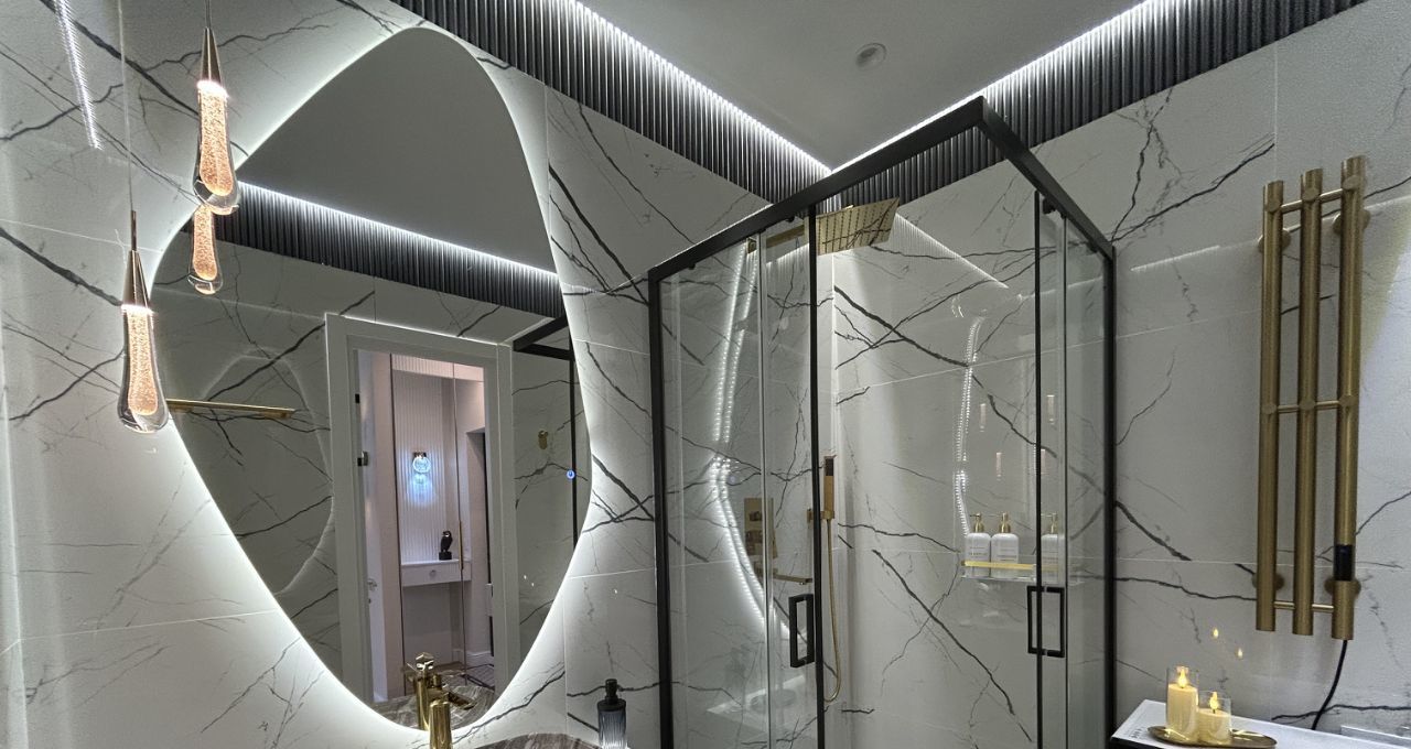- Санузел: унитаз с инсталляцией, стиральная машина, душевая 90х90 см, широкий умывальник с тумбой, проточный водонагреватель, полетенцесушитель.