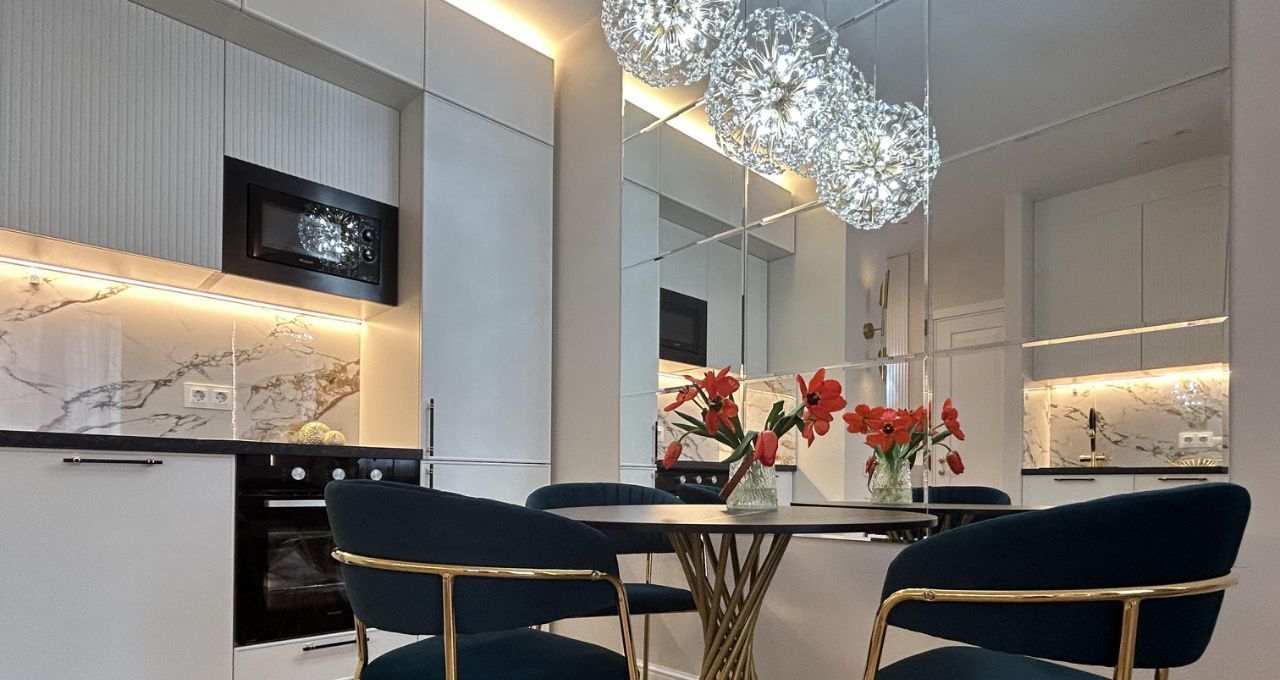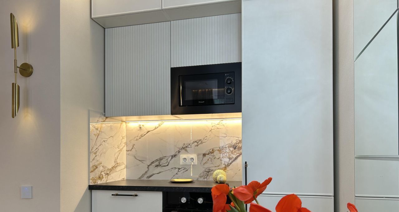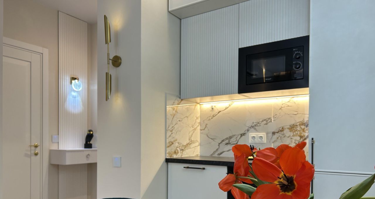 - Кухня: встроенная бытовая техника - холодильник, посудомоечная машина, микроволновая печь, смеситель с фильтром для питьевой воды, духовой шкаф, варочная индукционная панель.