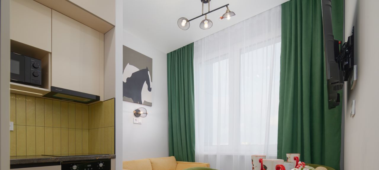 • Есть всё необходимое для комфортного проживания: посуда, бытовая техника, текстиль.