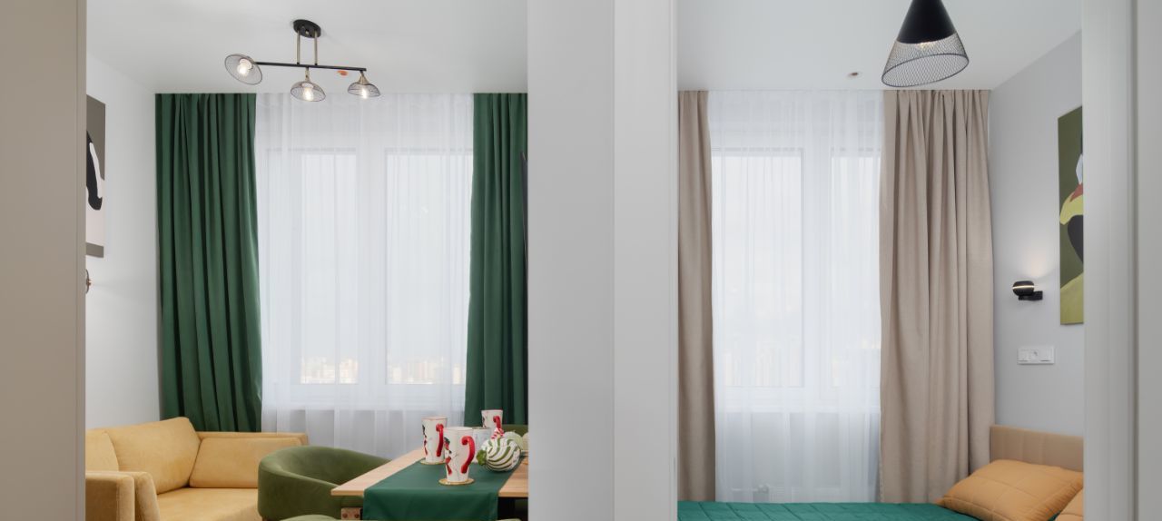 • Современный стиль, качественный ремонт, приятные светлые тона.