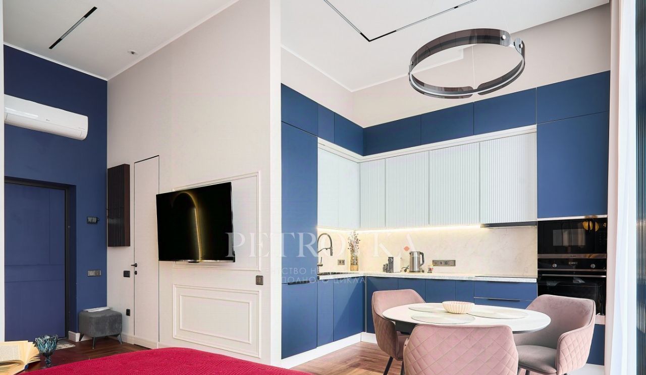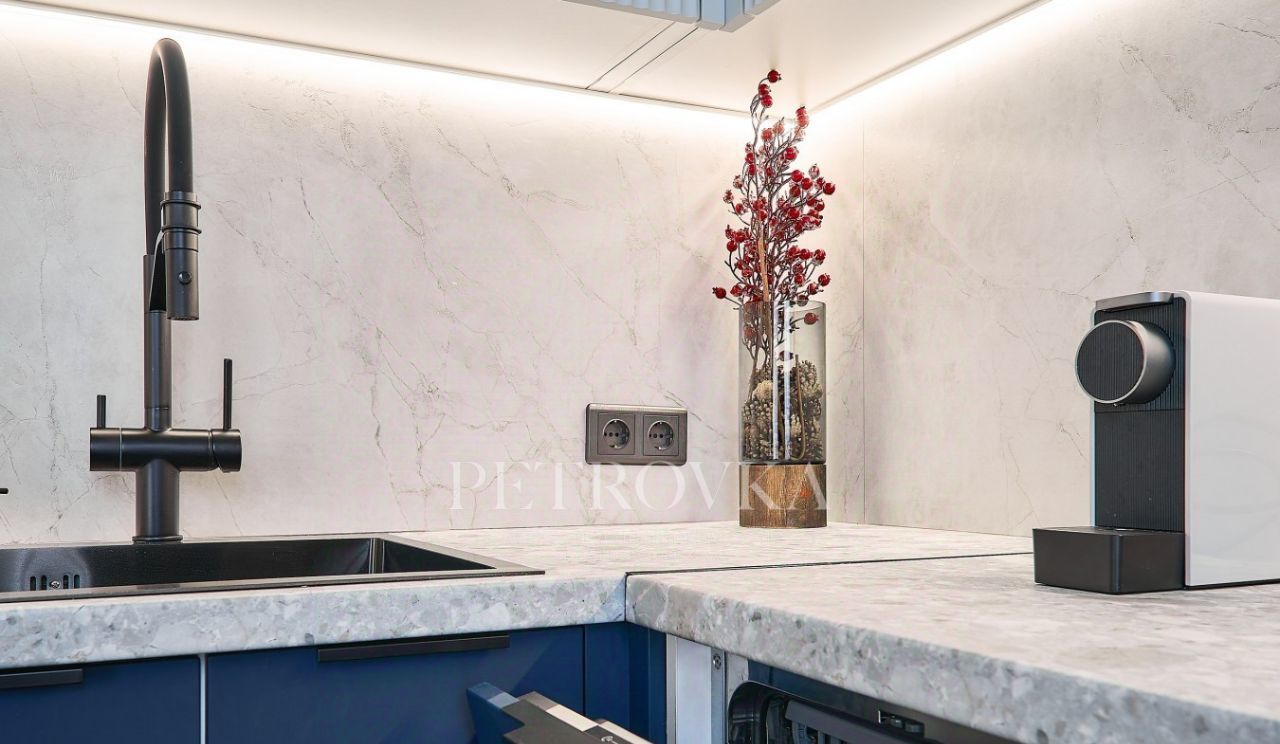 — встроенная кухня со всей техникой (посудомоечная, стиральная машина, варочная панель, кондиционер)