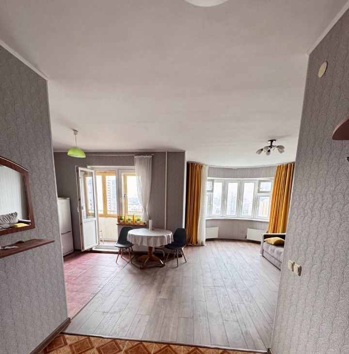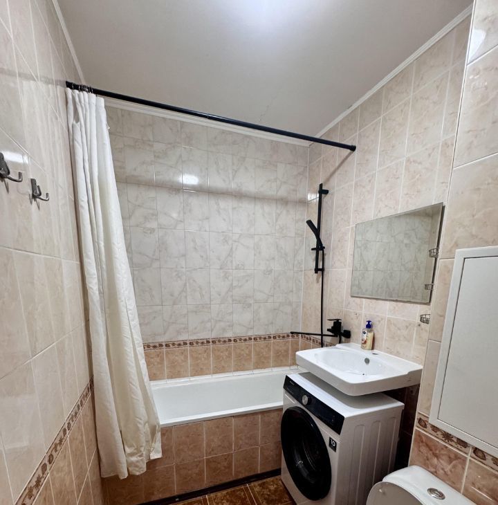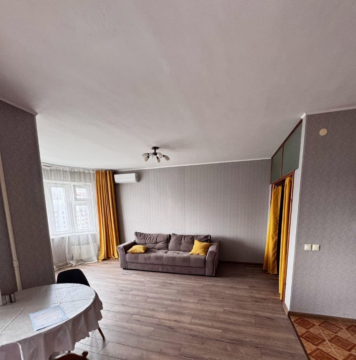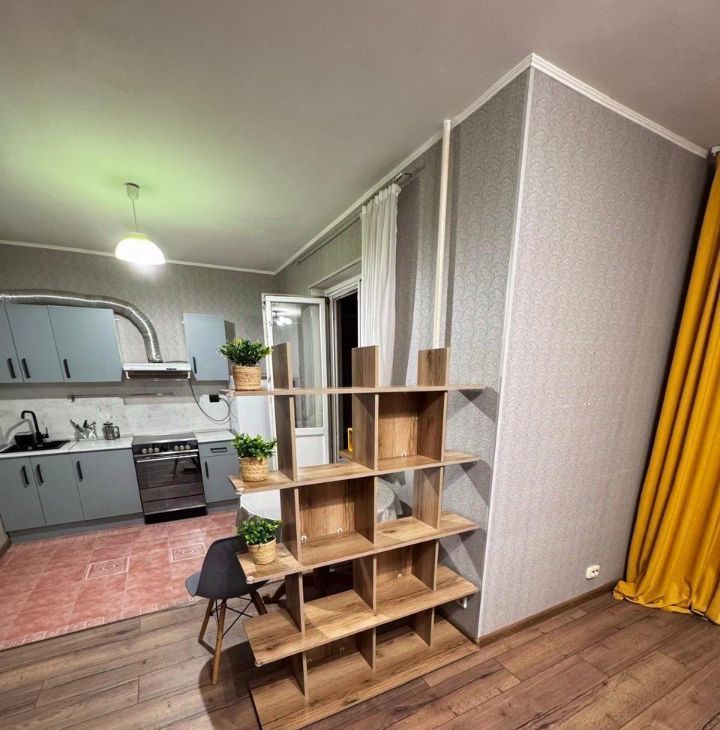 Предлагаем однокомнатную квартиру после косметического ремонта студийного плана, и есть комната, где можно оборудовать либо рабочую зону, либо гардеробную, либо спальную. Из техники есть кондиционер, стиральная машина, холодильник, электроплита. Из мебели — двухспальный диван, стол, стулья. Есть балкон застекленный, четыре лифта рядом, в шаговой доступности метро. Показ с первого показа 1 марта.