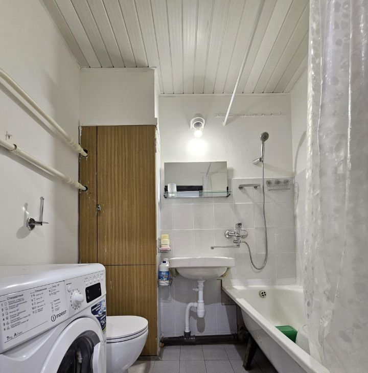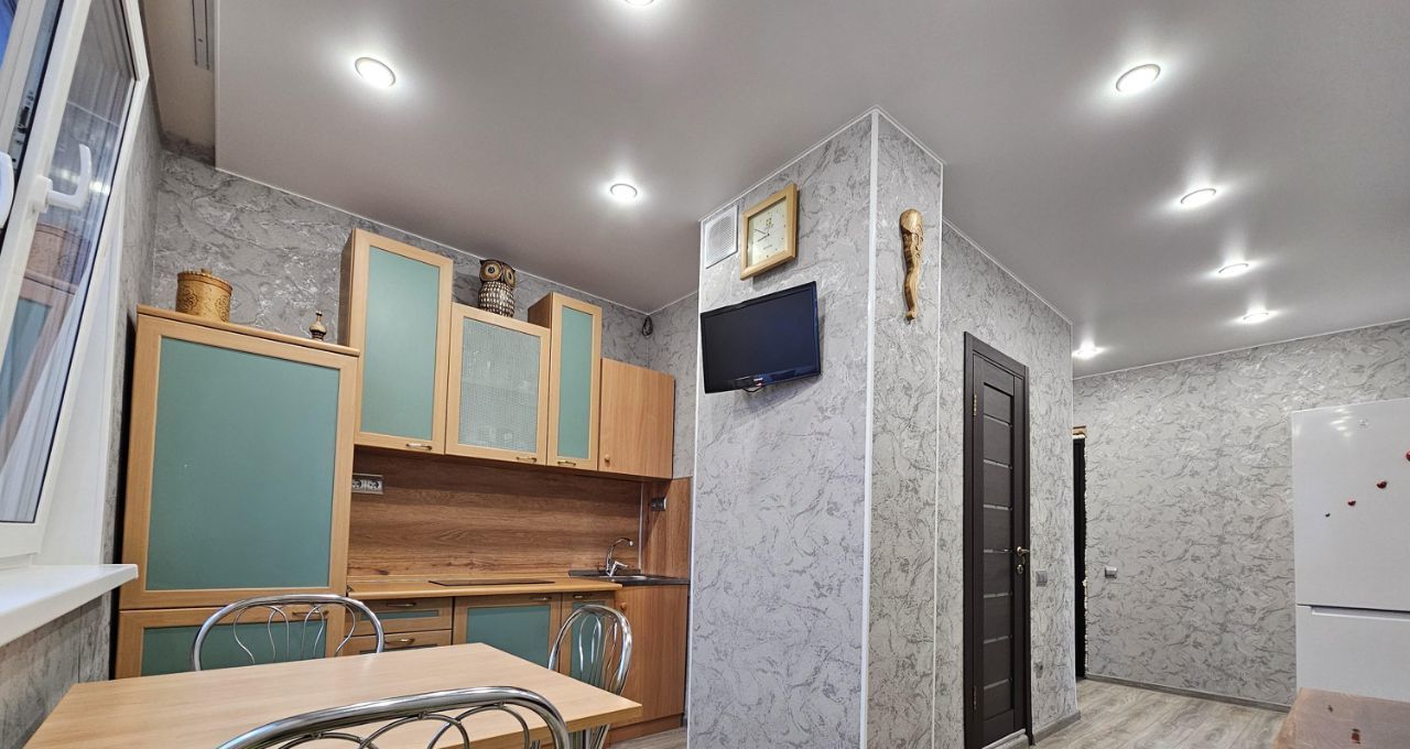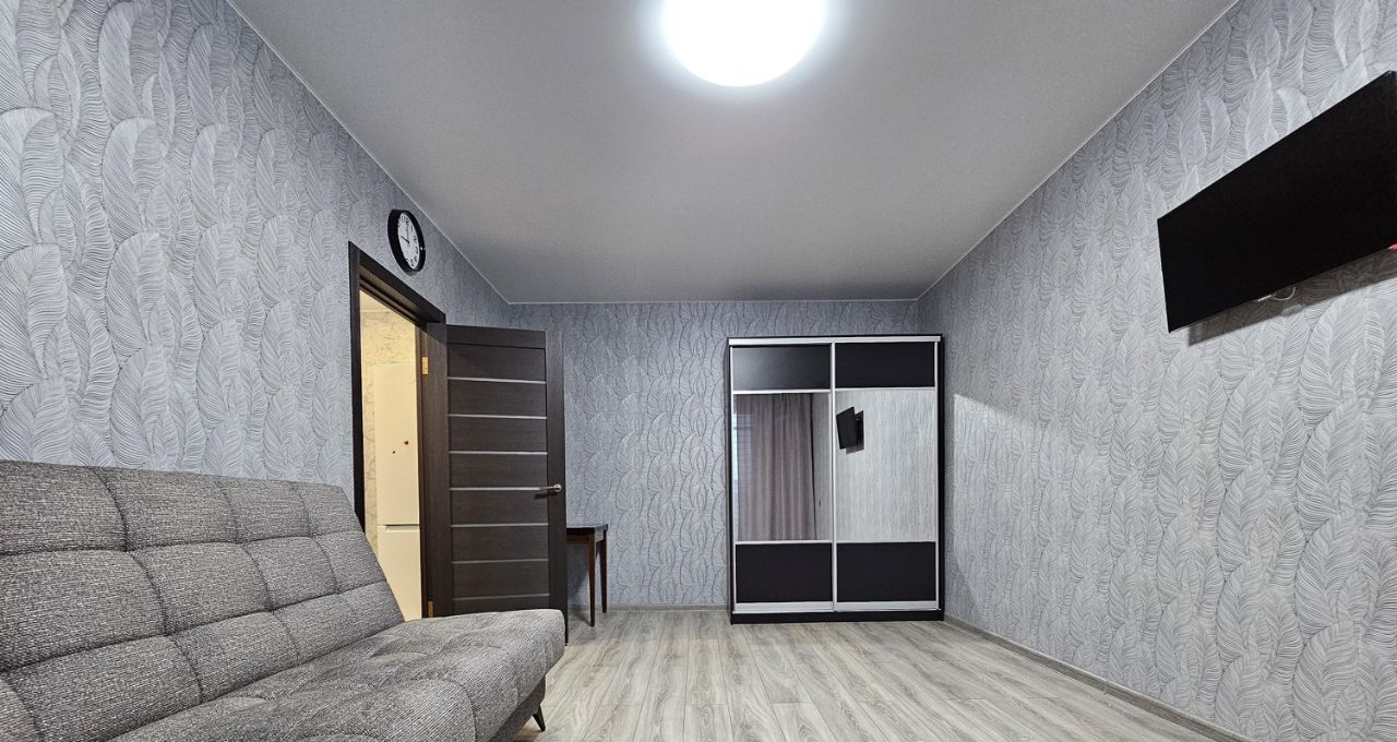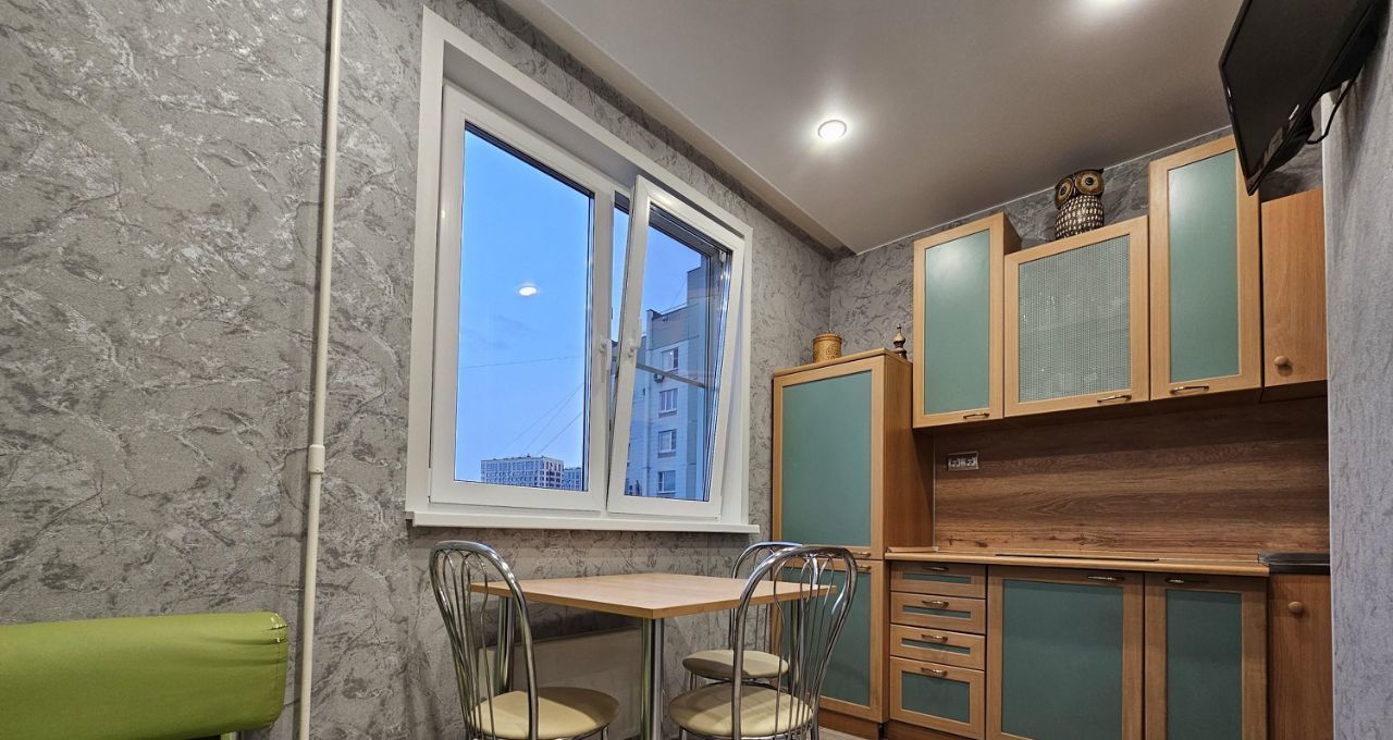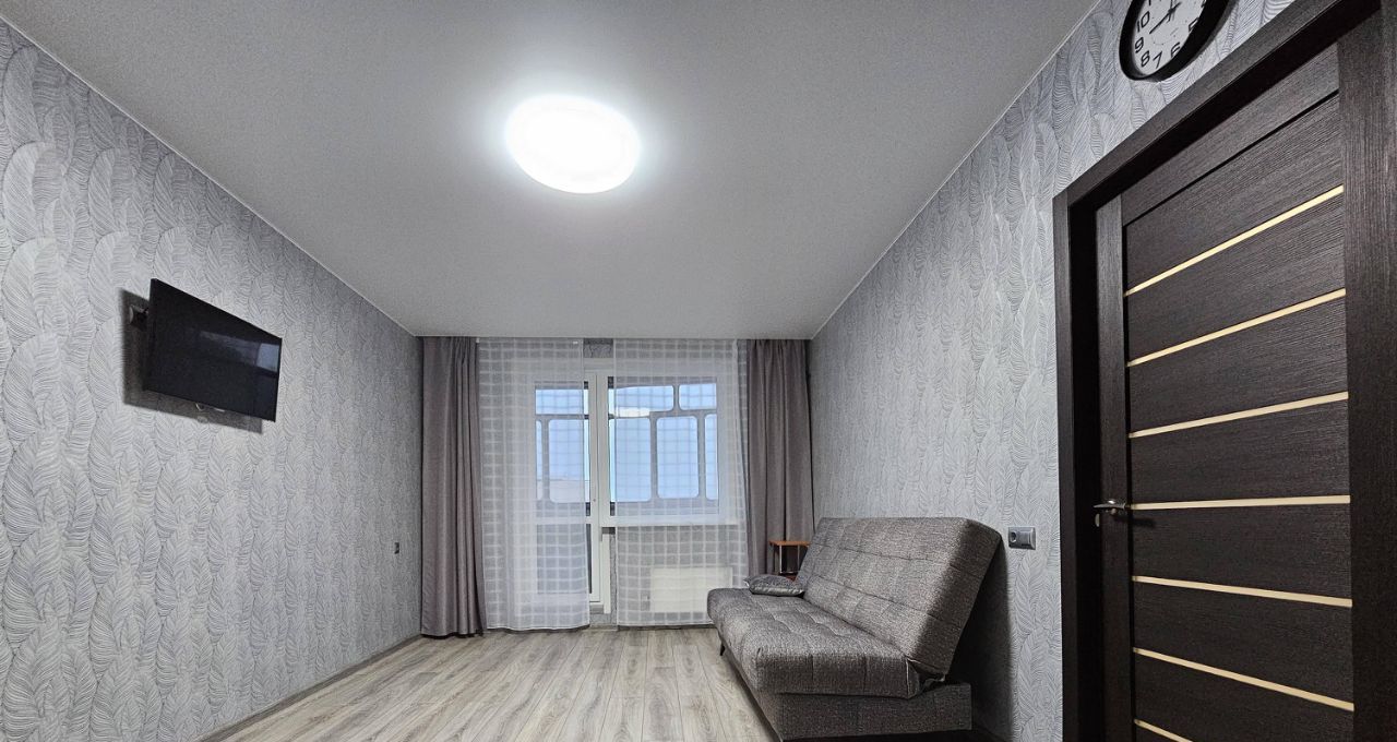 Квартира с евроремонтом, что создаёт современную и приятную атмосферу. В комнате и на кухне есть вся необходимая мебель, а также техника: холодильник, стиральная машина и телевизор. Окна выходят во двор, поэтому вас не будут беспокоить шумные улицы. В совмещённом санузле установлена ванна. Высота потолков — 2.64 метра, поэтому в квартире светло и просторно. Из дополнительных удобств — наличие лоджии и мусоропровод.