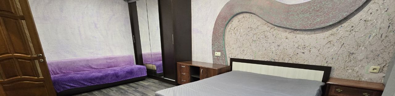 Комната: двуспальная кровать, удобный диван, вместительный шкаф, телевизор.