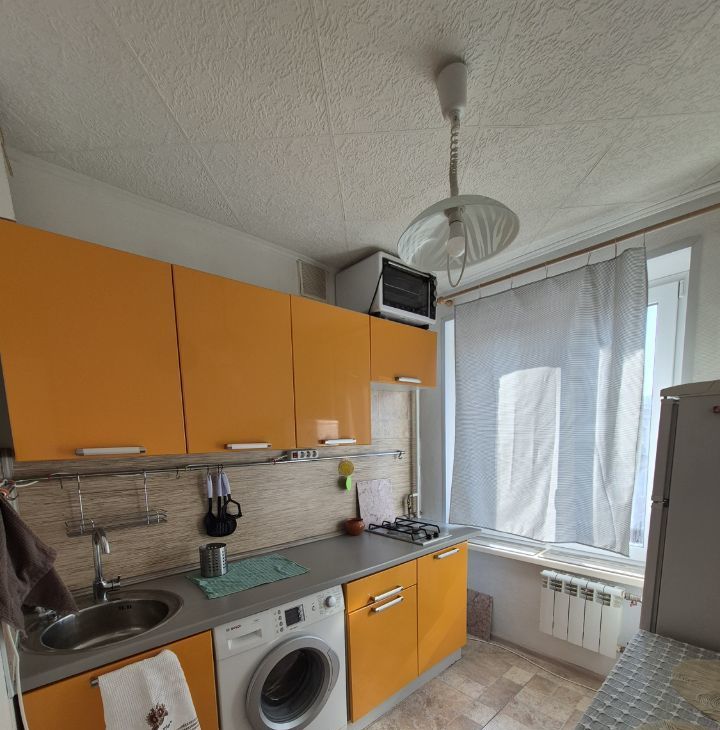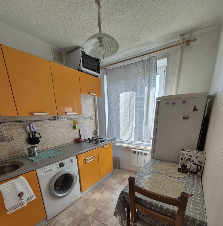 Сдается светлая, теплая однокомнатная квартира в отличном состоянии, пол в квартире ламинат, есть неостекленный балкон, выход на балкон из комнаты. В комнате два дивана, плательный шкаф, стол, журнальный столик; в кухне строенная мебель, холодильник, обеденный стол; санузел совмещен, установлена стиральная машина; в прихожей шкаф, комод. Дом расположен в глубине двора, поэтому в квартире тихо, соседи приличные люди, тихие, спокойные, летом много зелени, до метро Бульвар Рокоссовского 10 минут пешком. Сдается квартира на длительный срок.