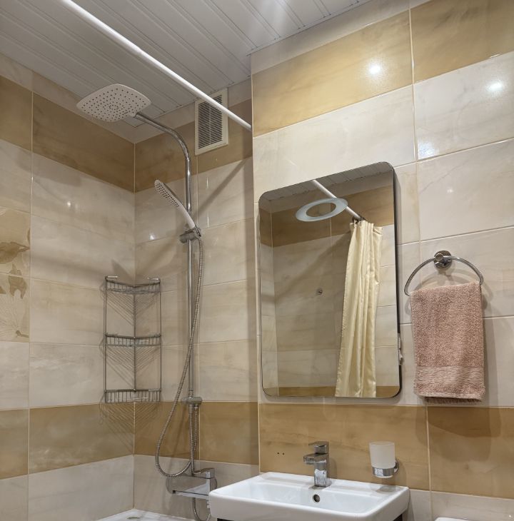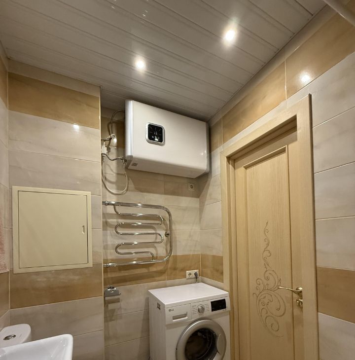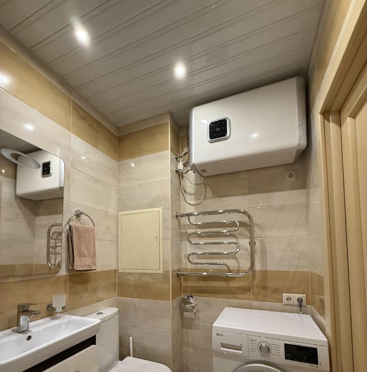 В санузле установлен электрический бойлер, для использования в периоды отключения горячей воды.