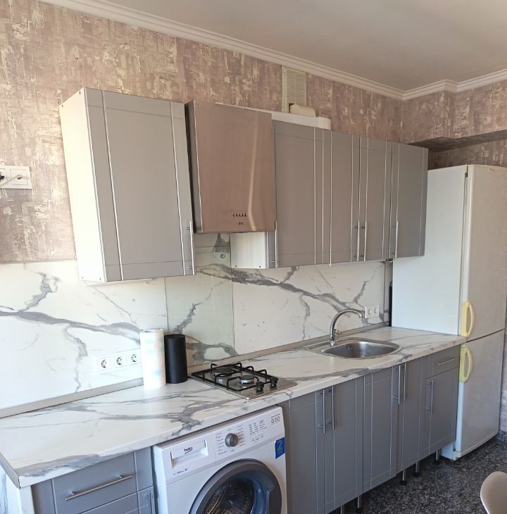 В квартире есть все необходимое для комфортного проживания. На кухне установлена вся необходимая мебель, а также современная техника: холодильник, стиральная машины, телевизор. Ванная комната оборудована ванной, а санузел совмещенный. Из дополнительных удобств стоит отметить наличие балкона и мусоропровода в доме, что делает проживание еще более комфортным.