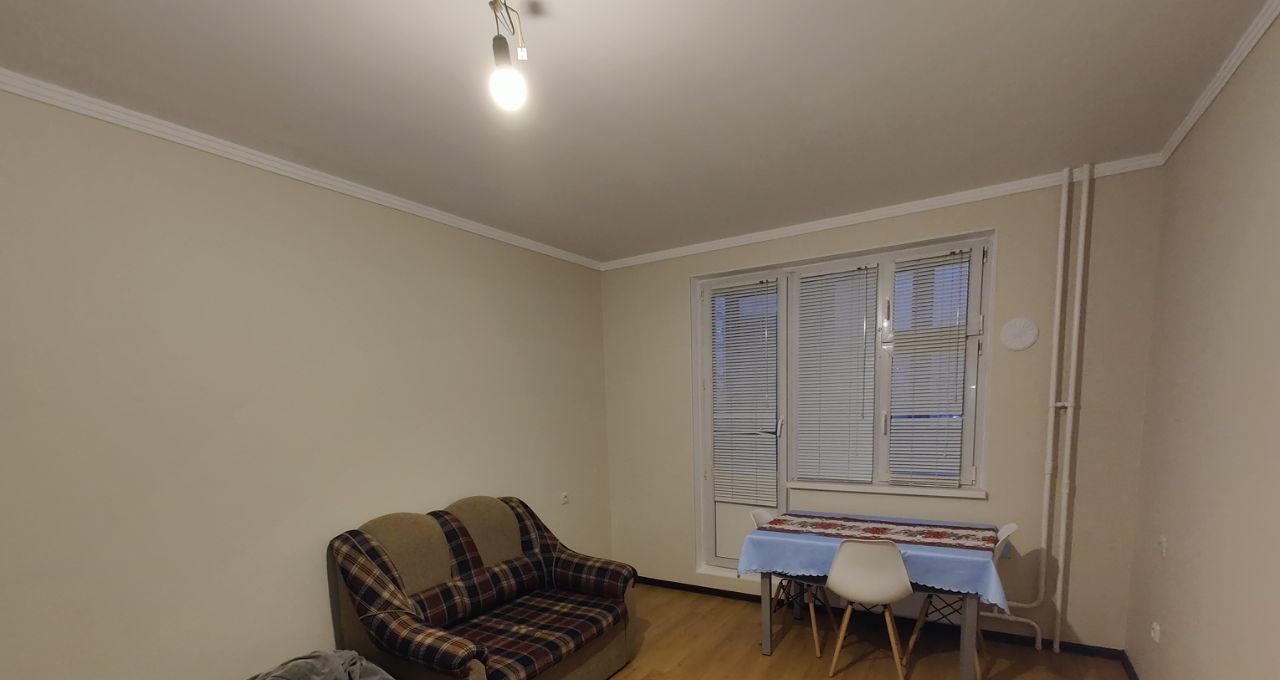 Мебели в комнате минимум, можно докупить в счёт оплаты первого месяца проживания. На кухне кухонный гарнитур, электрическую плиту с духовкой установят. Санузел совмещённый в плитке. Пол плитка и ламинат. Стеклопакеты, балкон застеклён, окна выходят на тихий двор. Квартира свободна и готова к заселению, ключи на руках, показ по договоренности.
