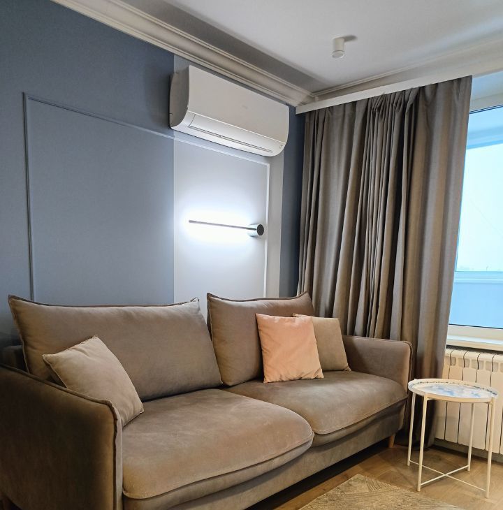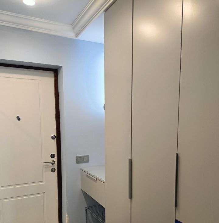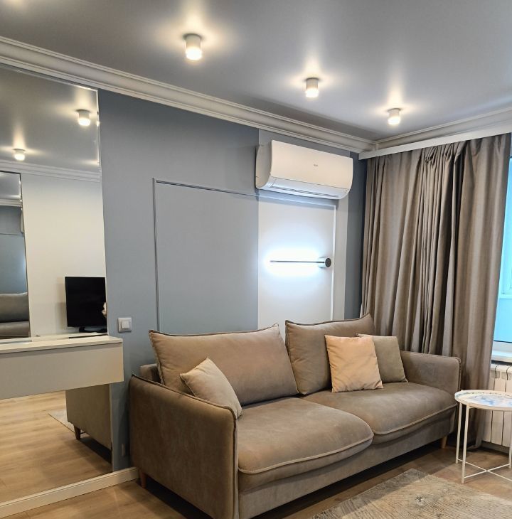 При входе Вас встречает прихожая с локоничной системой хранения. По правую руку вход в совмещенную ванную комнату, вся сантехника обновлена, установлен датчик затопления. На кухне Вас ожидает уютная обеденная зона, встроенная техника (холодильник,морозильная камера, посудомоечная машина, стиральная машина, духовой шкаф и микроволновка), стильный кухонный гарнитур и просторная зона готовки. Жилая комната включает в себя спальную зону с двухспальной кроватью, спрятанной от посторонних глаз в нише, а так же гостевую зону с юутным раскладным диваном.