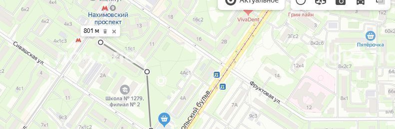 6-8 минут пешком от четырех станций метро - Нахимовский проспект, Варшавская, Каховская, Севастопольская.