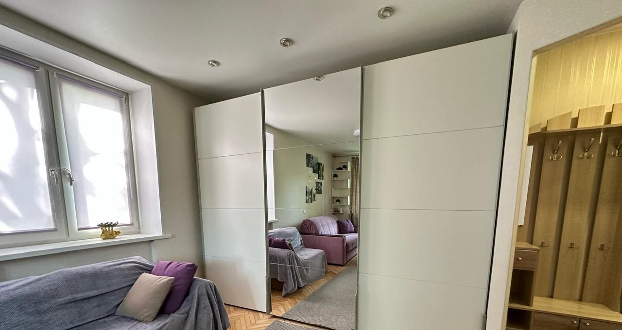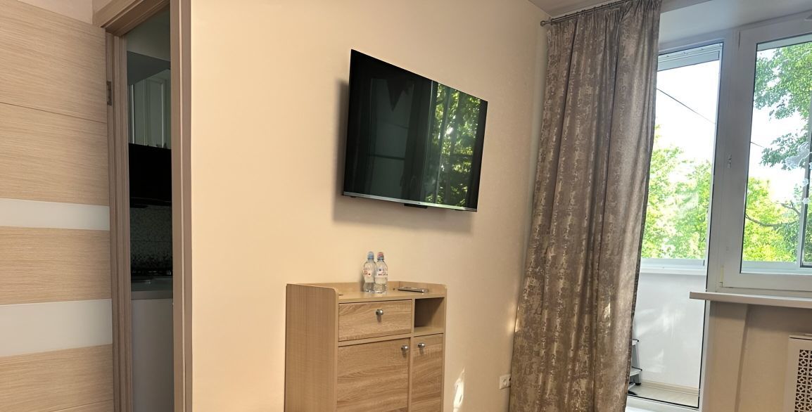 Сдается уютная светлая 1комнатная квартира. В комнате - большой встроенный шкаф, раскладывающийся диван, телевизор.