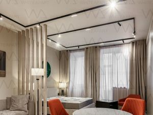 Квартира расположены в самом знаменитом районе - Патриаршие Пруды. Тверская улица расположена в 5 минутах от дома. Не смотря на центральное расположение квартиры, в квартире царит тихая и спокойная атмосфера. Окна квартиры выходят во двор.