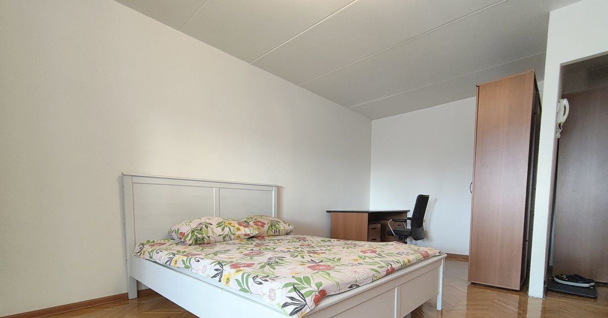 От подъезда до МЦК Крымская 800 метров, с парковской свободно. Окна выходят во двор, а лоджия застеклена - поэтому в квартире тихо. Спальное место - кровать. Санузел совмещенный.