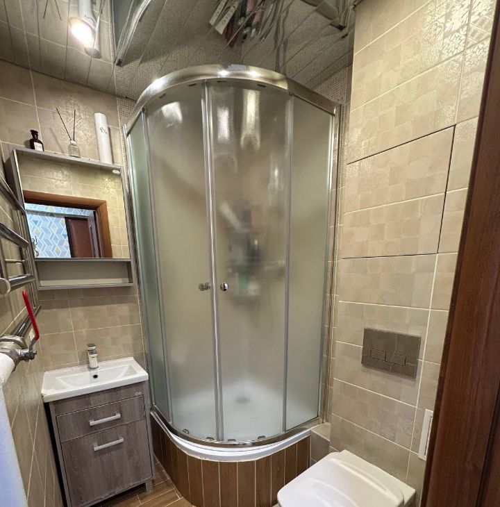В квартире сделан современный ремонт, есть вся необходимая мебель как в комнате, так и на кухне. Планировка включает компактную кухню площадью 5.5 кв. м. Санузел совмещённый, оборудован душевой кабиной. Для комфортного проживания установлена современная техника: кондиционер, холодильник, посудомоечная и стиральная машины, а также телевизор с ps3.
