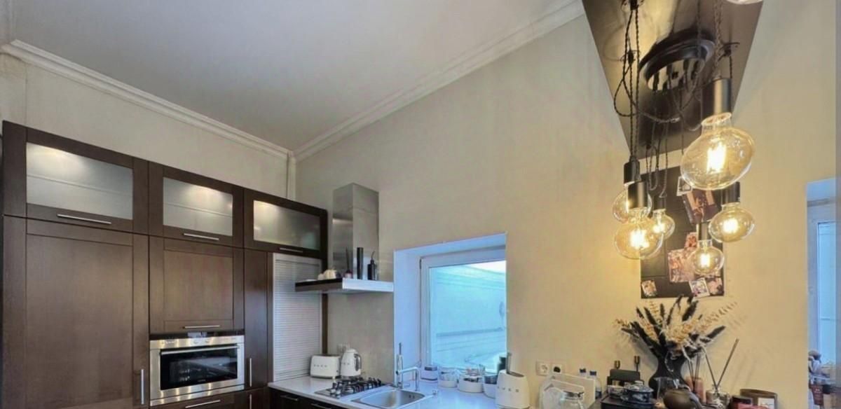 Сталинский дом. В квартире сделан дизайнерский ремонт, встроенная кухня со всей необходимой бытовой техникой и итальянская сантехника, теплый пол, паркет. Мебель сделана по индивидуальному заказу и установлена несколько лет назад.
