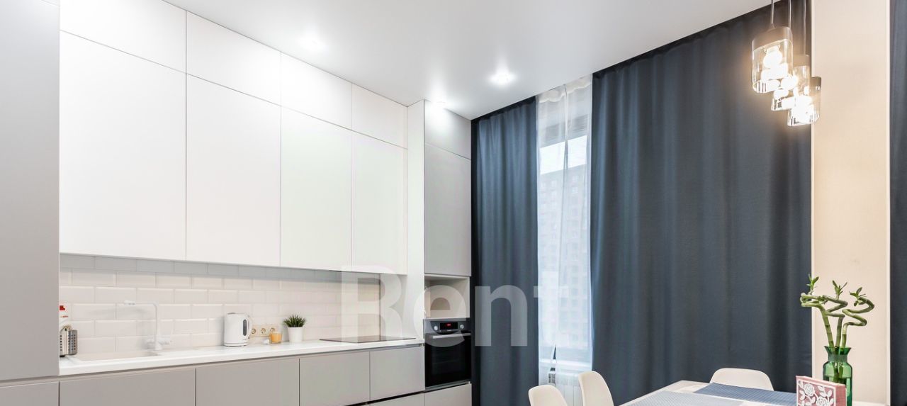 Стильная однокомнатная квартира в ЖК "Западный порт" в 7-8 минутах от метро "Фили". Комната удобно зонирована на гостиную и спальню. Кухонная зона оснащена современной бытовой техникой, включая посудомоечную машину и духовой шкаф. Окна квартиры выходят во двор.