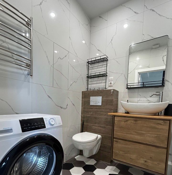 Квартира с дизайнерским ремонтом, что создает стильную и комфортную атмосферу. Жилая площадь составляет 16 кв. м, а кухня — 9 кв. м, что позволяет удобно разместить всю необходимую мебель и технику. В квартире есть холодильник, телевизор и стиральная машина. Совмещенный санузел оборудован ванной, поэтому у вас будет все для комфортного проживания.