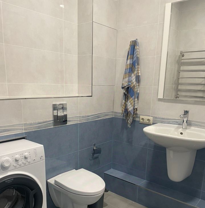 Санузел в современной отделке, имеется стральная машина (автомат)