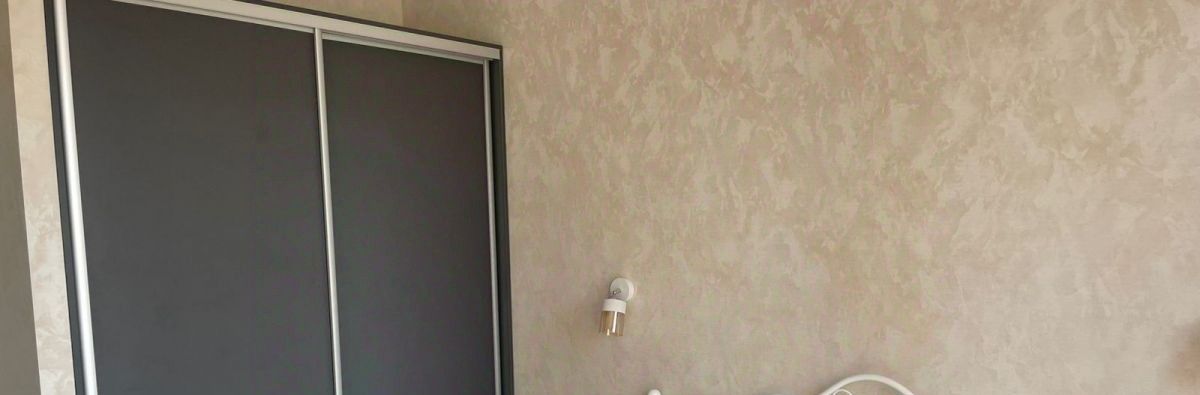 Спальня: большая кровать, шкаф-купе, тумбочки.