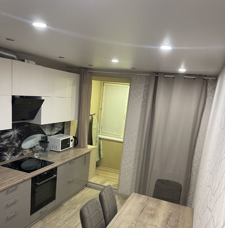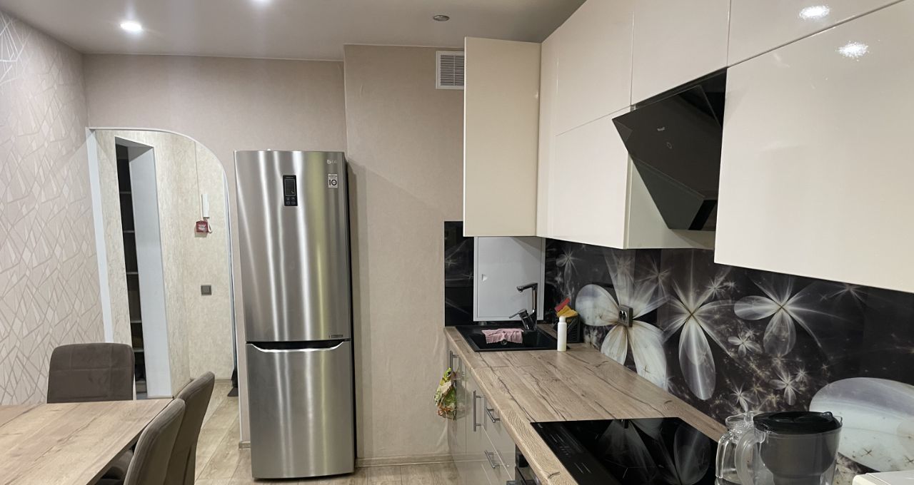 Квартира с дизайнерским ремонтом — стильная и современная. Просторная кухня позволяет удобно разместить всю необходимую бытовую технику. Санузел совмещенный, оснащен всем необходимым для комфортного проживания. В квартире есть лоджия, на которой получился отдельный кабинет.