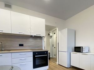 Предлагается 1-комнатная квартира общей площадью 20 м² в ЖК "Большая Очаковская 2" недалеко от станции метро "Аминьевская". Для комфортного проживания в наличии имеется вся необходимая мебель. Кухонный гарнитур оснащен духовой печью. Окна обращены во двор, обеспечивая тишину.
