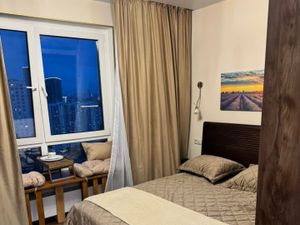 Редкое предложение, видовая квартира!! Квартира с большой кухней и панорамным видом из окон в новом доме с дизайнерским ремонтом. Оборудована и укомплектована полностью всей техникой и мебелью для комфортного проживания! .Большая гардеробная! Встроенная кухня с техникой, посудомоечной машиной, холодильником, диван, кресло и стол под рабочее место, двухспальная кровать, стиральная машина и многое другое. Шикарный закрытый двор с беседками, качелями, спортивной площадкой. Заезжай и живи! Большая парковка перед домом.