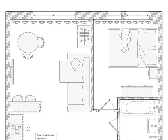 Бытовая тeхникa: холодильник, варочная панель, духовой шкаф, кондиционер, посудомоечная машина, стиральная машина, телевизор, свч, чайник, роутер с Wi-Fi.
