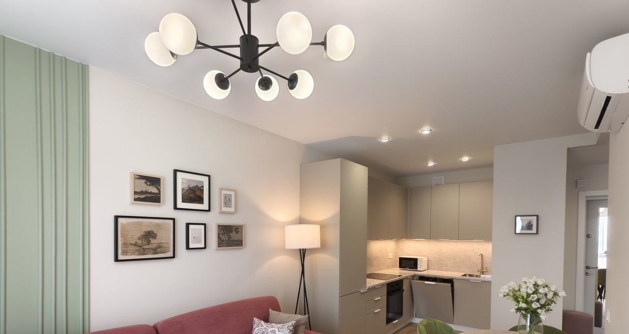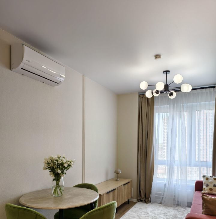 Имеется кондиционер, телевизор, посудомоечная машина, СВЧ, раскладной диван.