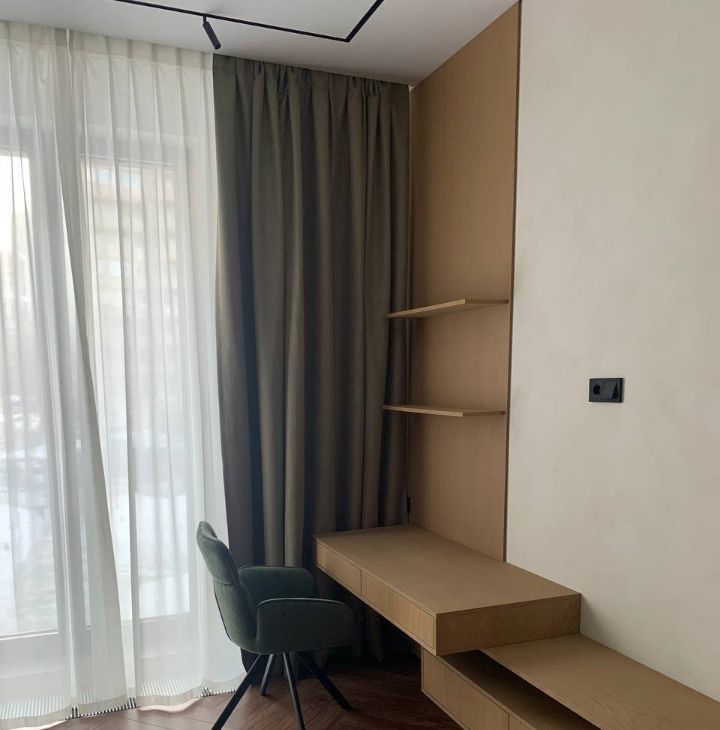 Высокие потолки, панорамные открывающиеся окна. В спальне сделана звукоизоляция, в ванной комнате пол с подогревом, основное покрытие пола: кварцвинил.