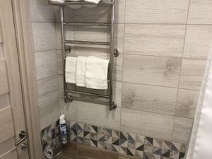В квартире сделан дизайнерский ремонт, установлена современная мебель. Есть вся необходимая техника: кондиционер, холодильник, посудомоечная и стиральная машины, телевизор. Ванная комната оснащена ванной. Объединенный санузел добавляет удобства. В квартире проведен интернет.