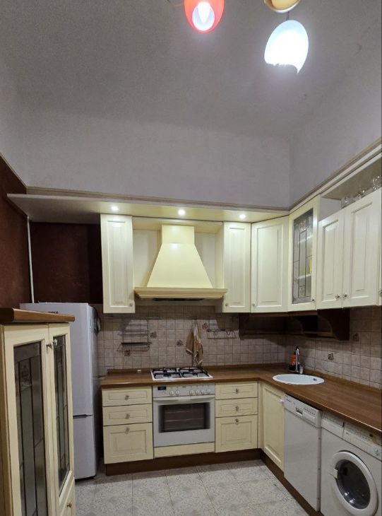 В квартире сделан современный евроремонт. На кухне есть вся необходимая мебель и техника: холодильник, посудомоечная и стиральная машины. Санузел совмещённый, оборудован душевой кабиной. Окна выходят во двор, поэтому в квартире тихо и спокойно.