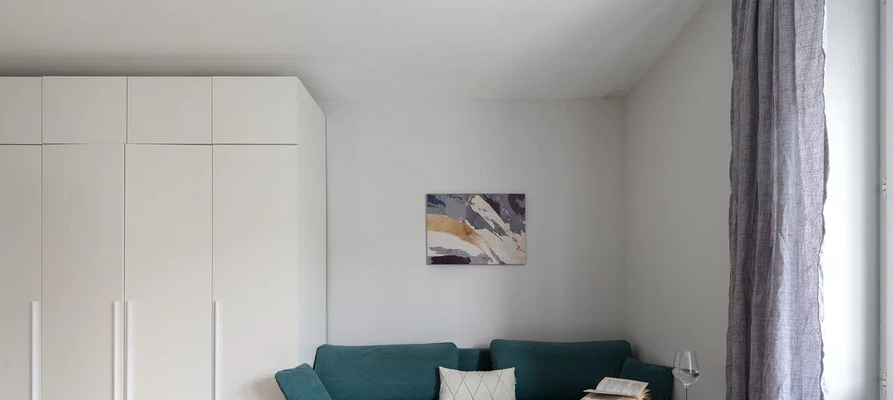 Сдаётся уютная светлая квартира площадью 35,6 кв.м в тихом центре Москвы по адресу: Большой Кондратьевский переулок, 10с1. Квартира расположена на 4 этаже 8-этажного дома с высокими потолками 3,2 м и приятным свободным видом из окон.