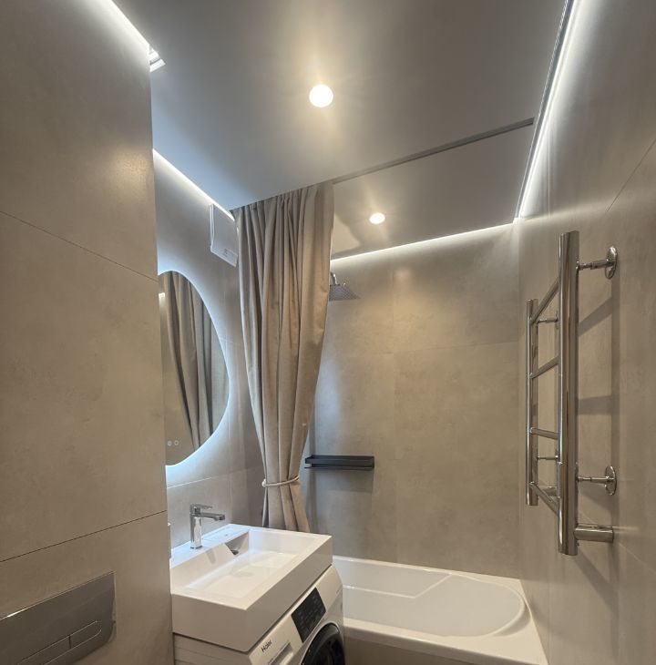 - Сантехника и комфорт: стиральная машина Haier, электрический полотенцесушитель, вентиляция в ванной.