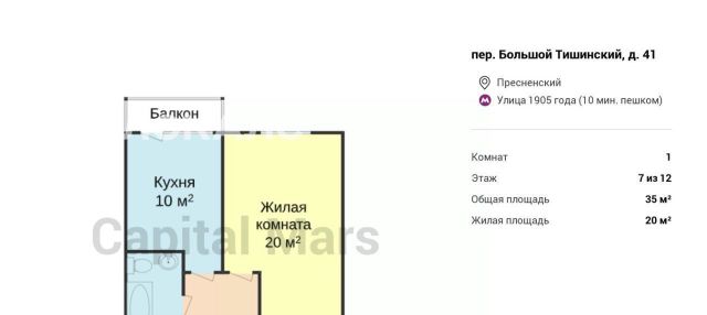 1-к кв. Москва Большой Тишинский пер., 41 (35.0 м²)