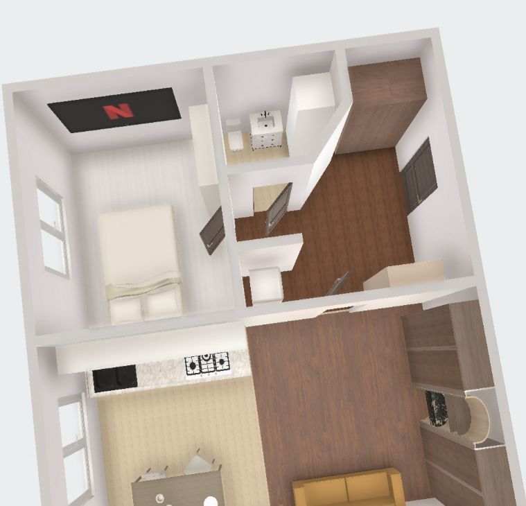 Планировка евро 2-х комнатная: большая гостиная с выделенной кухонной зоной 20 кв.м. + спальня 8,5 кв.м.