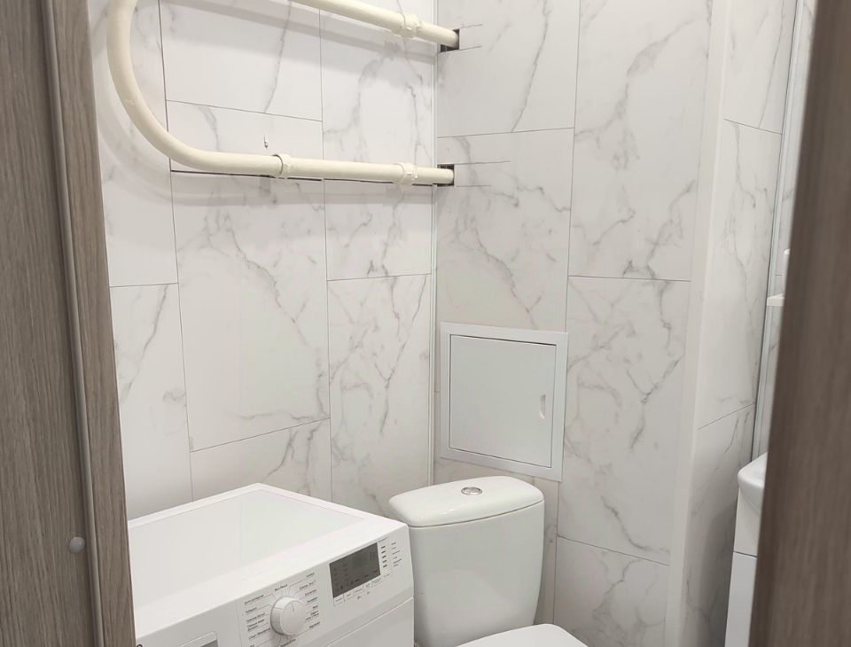 В квартире сделан качественный евроремонт — можно сразу заезжать и жить. В комнате и на кухне есть вся необходимая мебель, а также техника: холодильник и стиральная машина. Планировка продумана до мелочей, есть совмещенный санузел с ванной и балкон с видом на улицу.
