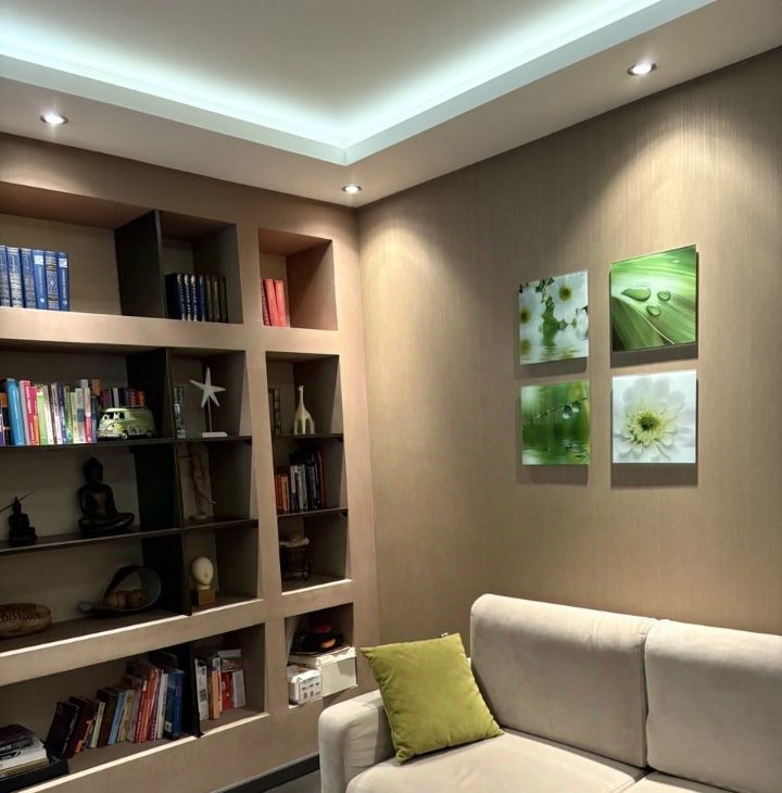 Застекленный балкон, пол поднят и утеплен, подогрев пола. Балкон является продолжением дизайна квартиры.