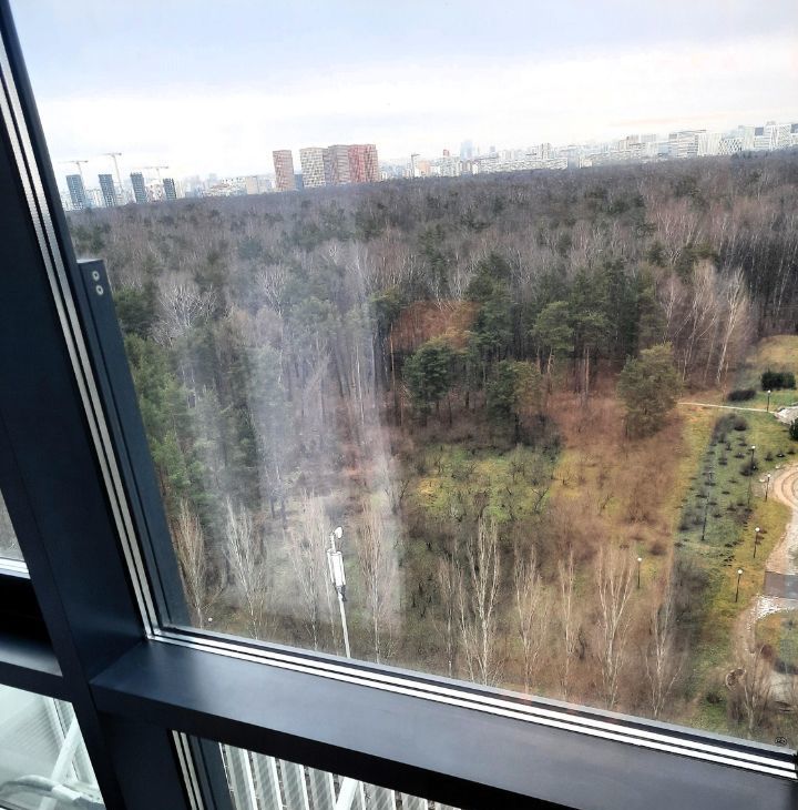 Панорамный вид из окна на Ботанический сад. Очень красиво и поднимает настроение.