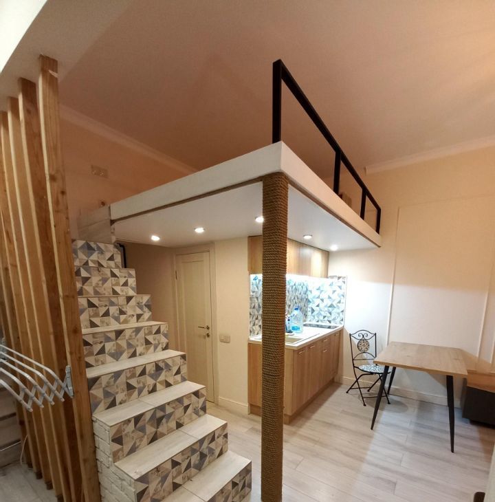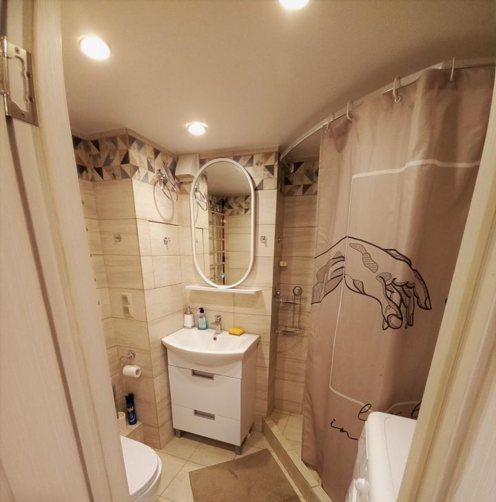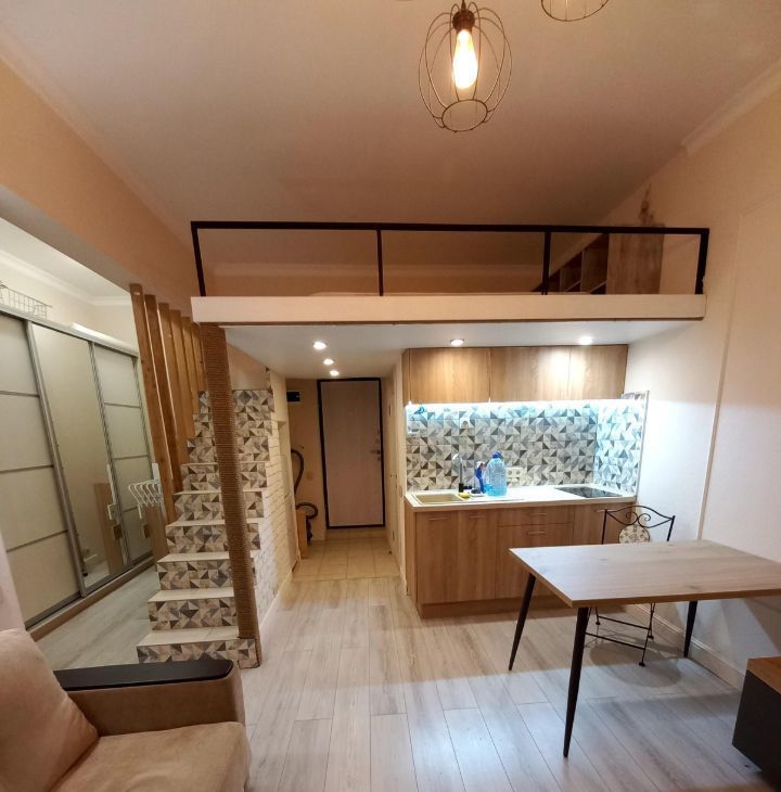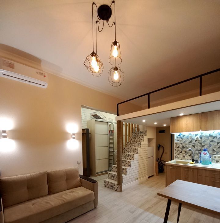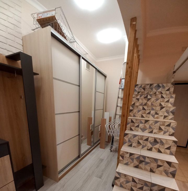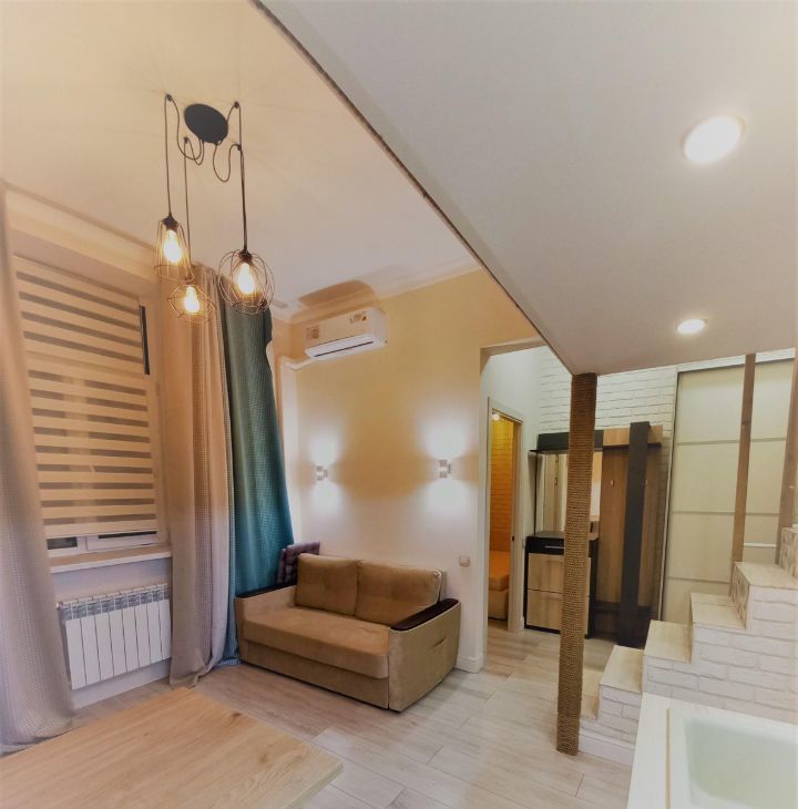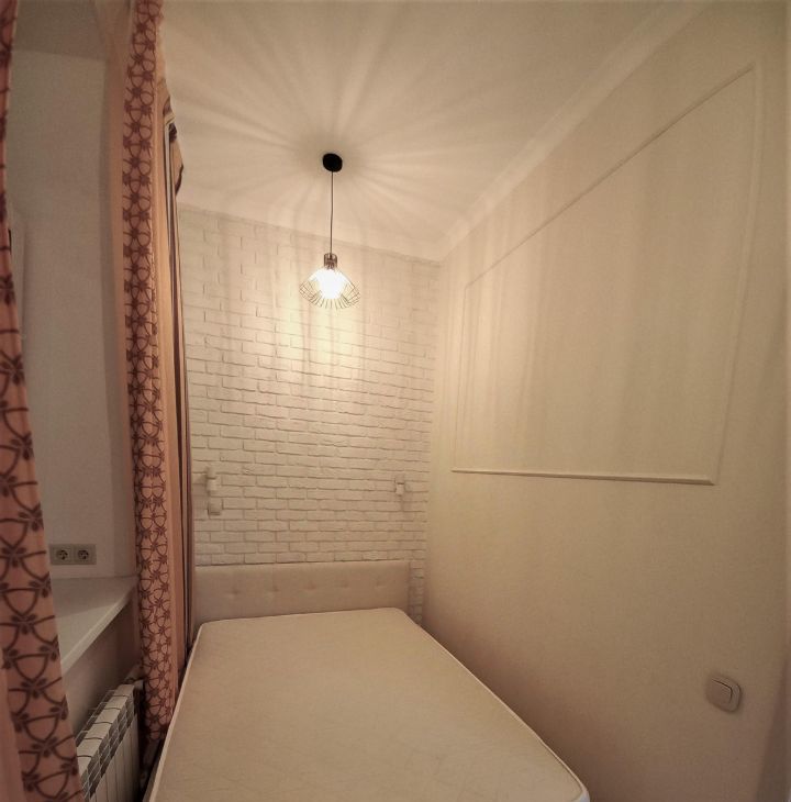Кирпичный дом 1957 года постройки с капитальным ремонтом всех помещений и общедомовых коммуникаций в 2019, толстые стены, отличная шумоизоляция. В квартире сделан дизайнерский ремонт с нуля и "для себя": стяжка, электрика, потолок, стены, сантехника. Электрика проведена с запасом из качественных материалов. На полу во входной зоне и в ванной - плитка керамика, в жилой зоне ламинат. стены: обои под покраску + покраска. В ванной унитаз, зеркало с подсветкой, раковина с тумбой, душевая зона. Кухонный гарнитур, велюровый раскладной диван, кухонный стол со стульями, большой шкаф-купе, прихожая. На втором уровне широкое спальное место. Полностью меблированный кухонный гарнитур, варочная поверхность, чайник, холодильник. В ванной стиральная машина, душ. В спальне кровать с подъемным механизмом (место для хранения). На 2м этаже матрас, стеллаж, выведена электрика (розетки, выключатели). Шторы, зеркало, тумба для телевизора, микроволновка, холодильник, шкаф, сушилка для белья, стол и стулья, люстры и светильники, роутер входят в стоимость. 4й этаж (не первый, не последний).