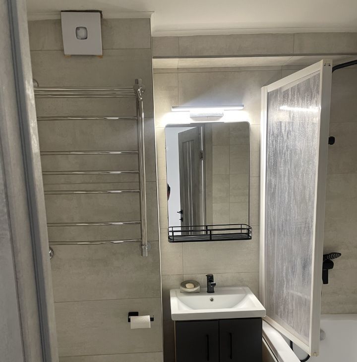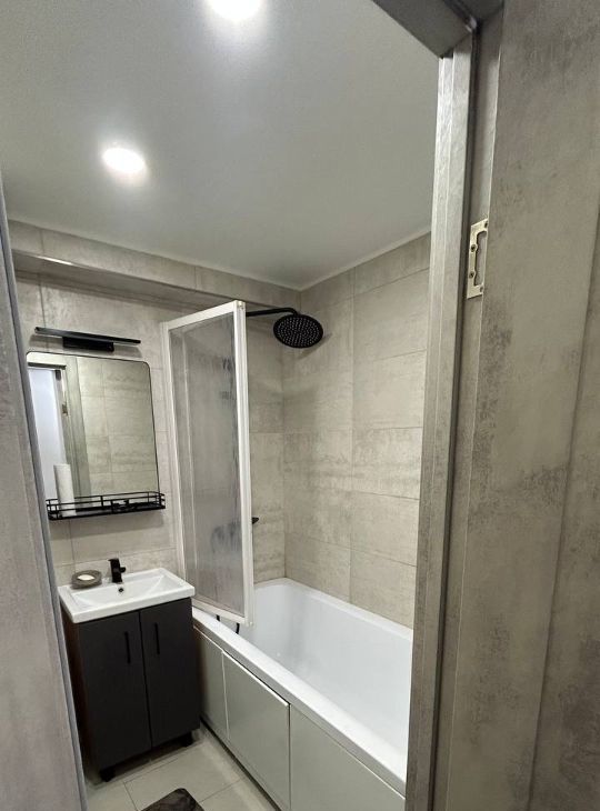 В квартире выполнен дизайнерский ремонт, что придает ей особый шарм и уют. Она полностью меблирована как в комнате, так и на кухне, которая оборудована всей необходимой техникой: кондиционером, холодильником, посудомоечной машиной, телевизором и стиральной машиной. Санузел совмещен и оснащен ванной, что позволяет расслабиться после насыщенного дня. Окна выходят во двор, что обеспечивает тишину и спокойствие.