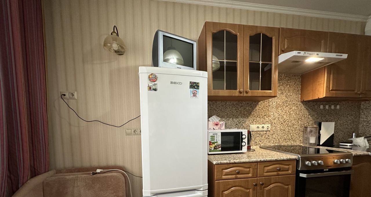 Полностью меблирована и укомплектована всей необходимой для комфортного проживания мебелью и техникой. Есть кладовка. Лоджия остеклена.